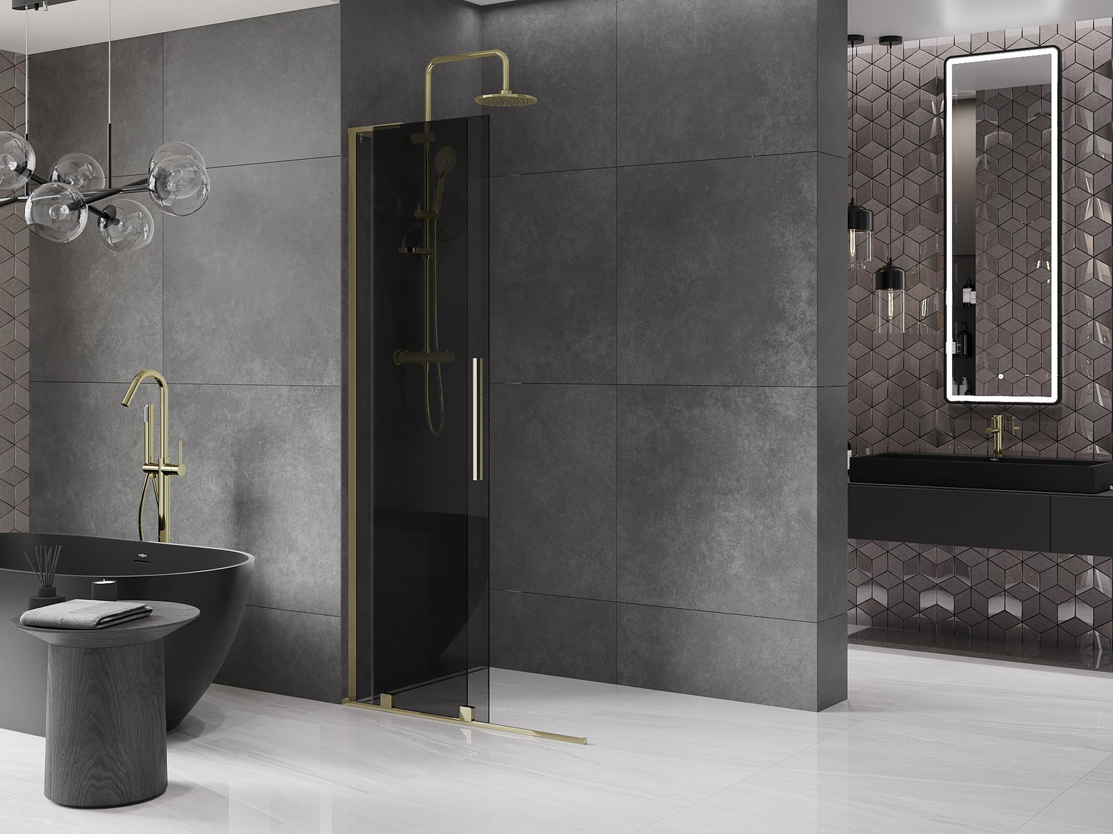 Mexen Velar L zuhanyfal tolóajtóval Walk-in 100 x 200 cm, grafit 8 mm, arany - 871-100-003-43-50