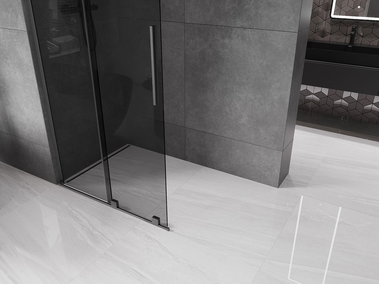Mexen Velar L csúsztatható zuhanyfal Walk-in 100 x 200 cm, grafit, 8 mm, szálcsiszolt gun gray - 871-100-003-43-66