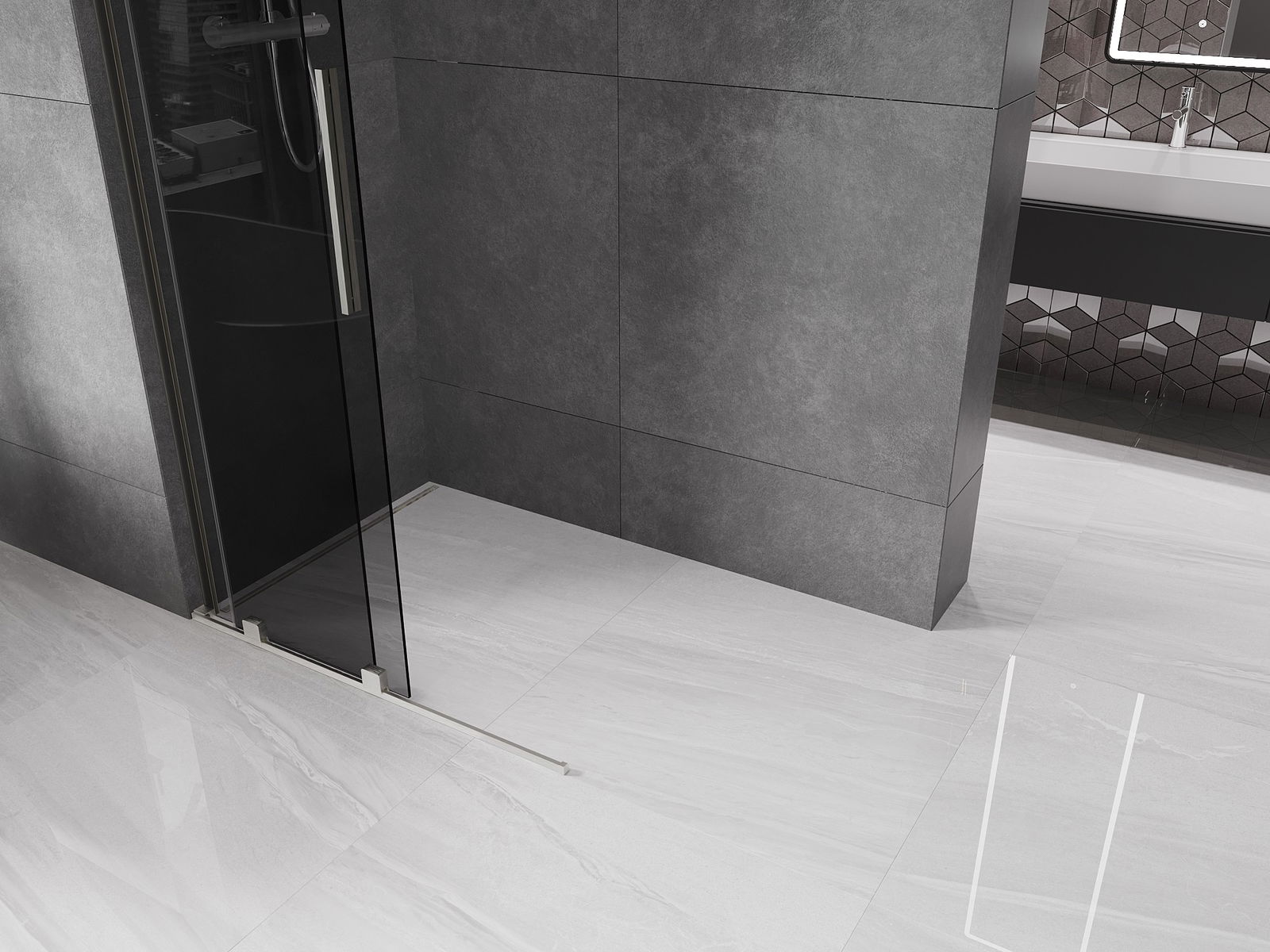 Mexen Velar L tolóajtós zuhanyfal Walk-in 110 x 200 cm, grafit 8 mm, szálcsiszolt nikkel - 871-110-003-43-97