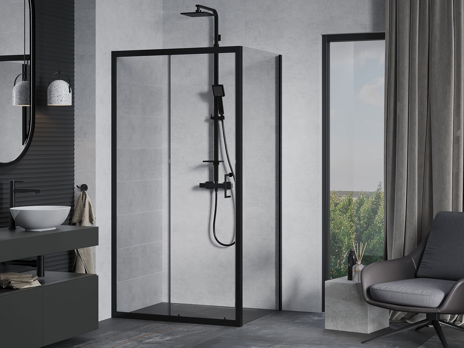 Mexen Apia 95 x 90 cm-es tolóajtós zuhanykabin, átlátszó, fekete - 840-095-090-70-00