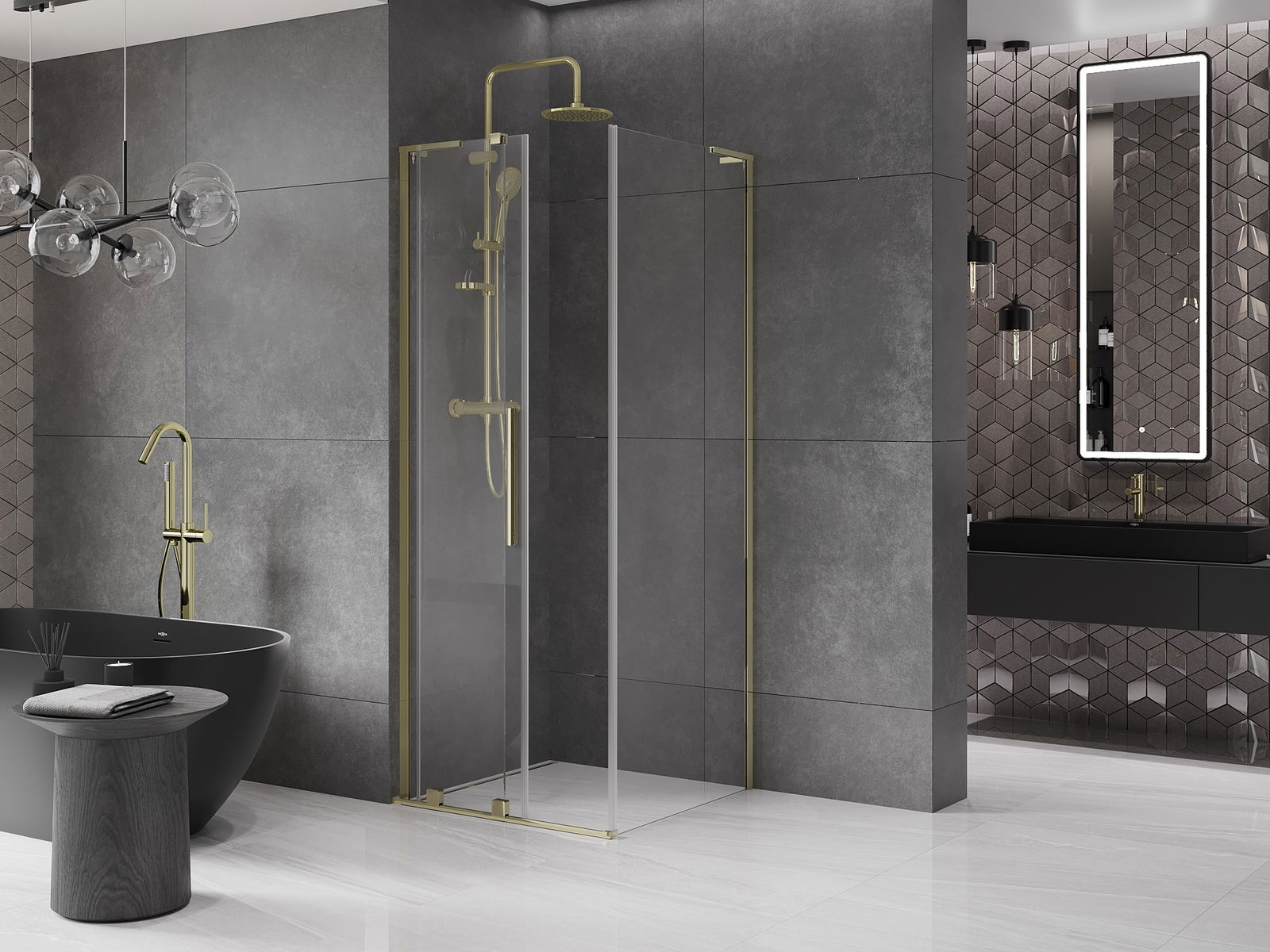Mexen Velar L tolóajtós zuhanykabin 120 x 120 cm, áttetsző, arany - 871-120-120-03-50
