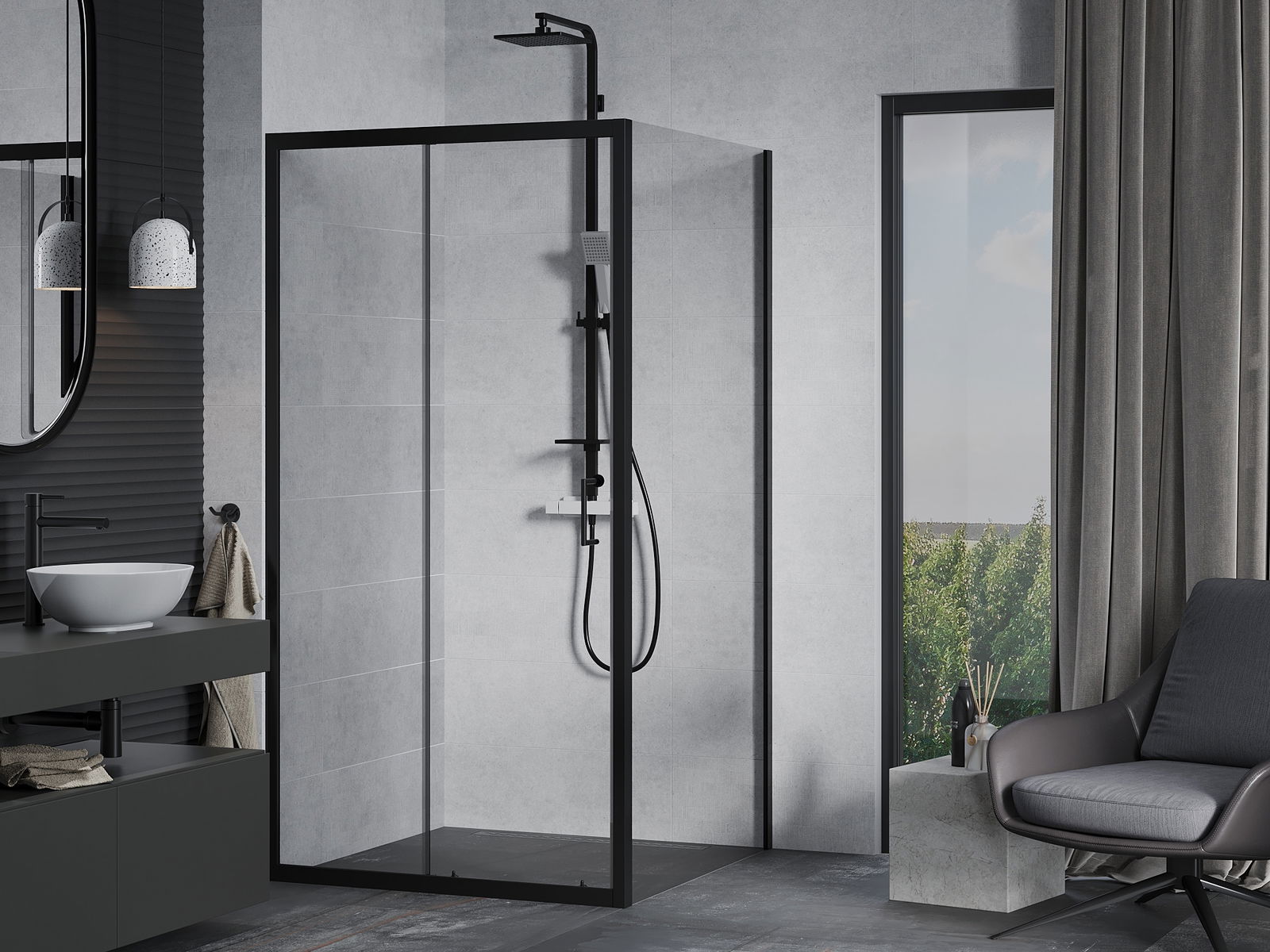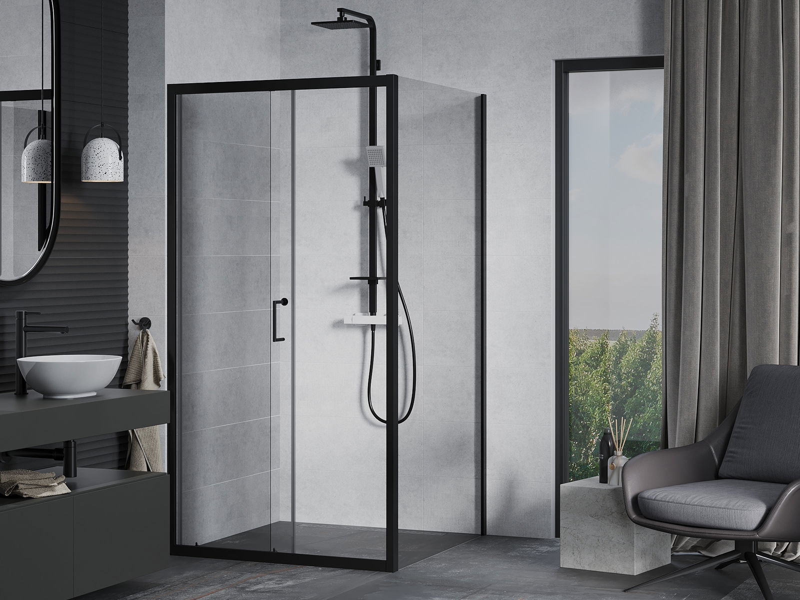 Mexen Apia 100 x 100 cm-es tolóajtós zuhanykabin, átlátszó, fekete - 840-100-100-70-00