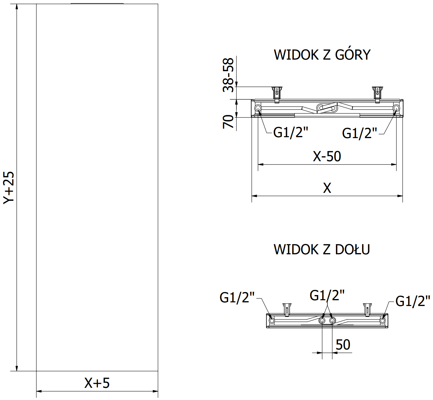 Függőleges vízcsatornák távolsága: 33,3 mm