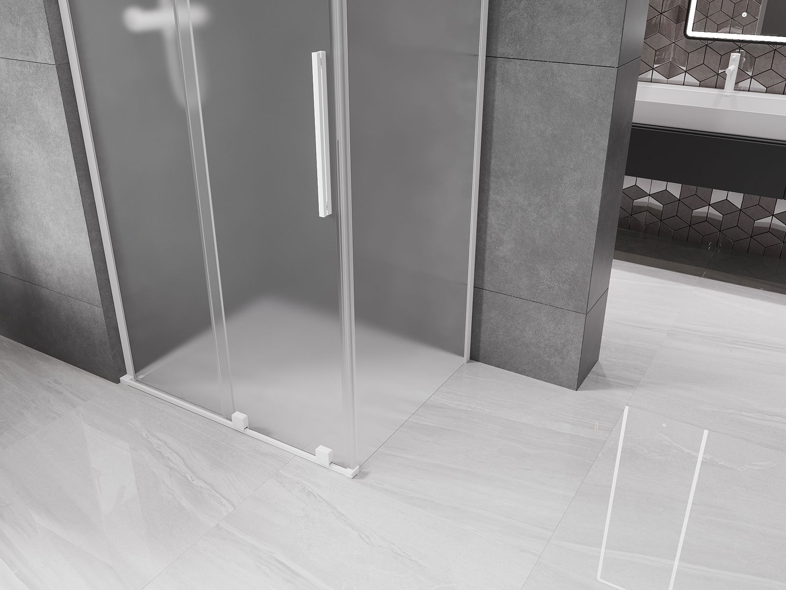 Mexen Velar L toló zuhanykabin 90 x 80 cm, fagyott, fehér - 871-090-080-33-20