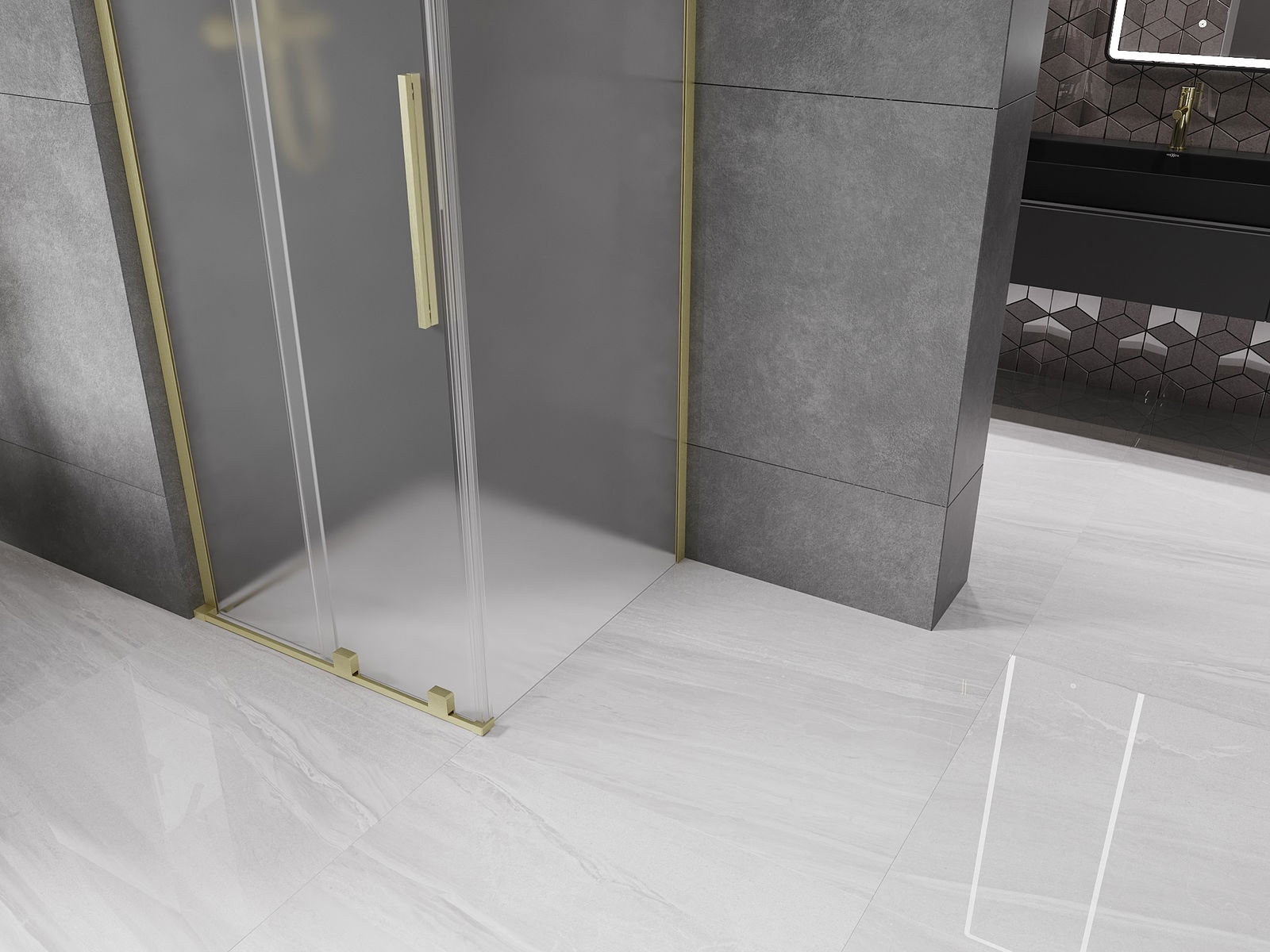Mexen Velar L tolóajtós zuhanykabin 90 x 90 cm, matt, arany szálcsiszolt - 871-090-090-33-55