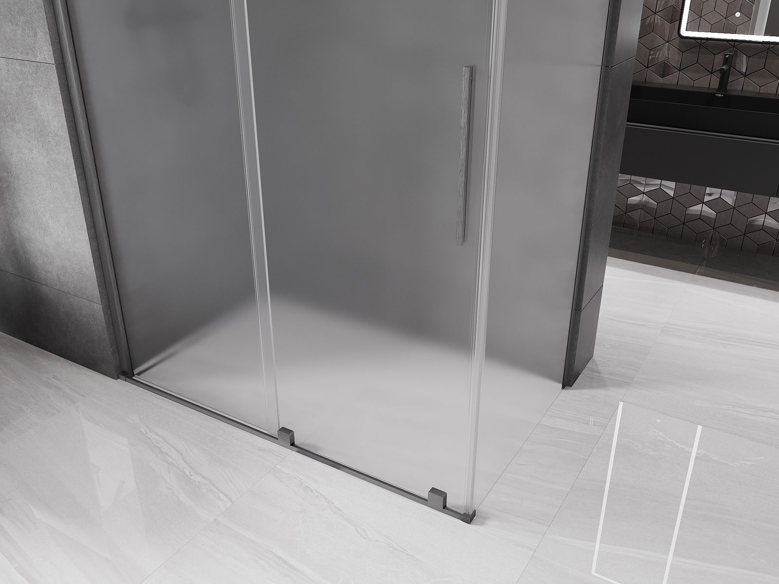 A praktikus és kényelmes fogantyú rozsdamentes acélból készült. A divatos forma a profilok színéhez igazított kivitelezéssel modern és stílusos megjelenést kölcsönöz az egésznek, kiemelve minden fürdőszoba esztétikáját.