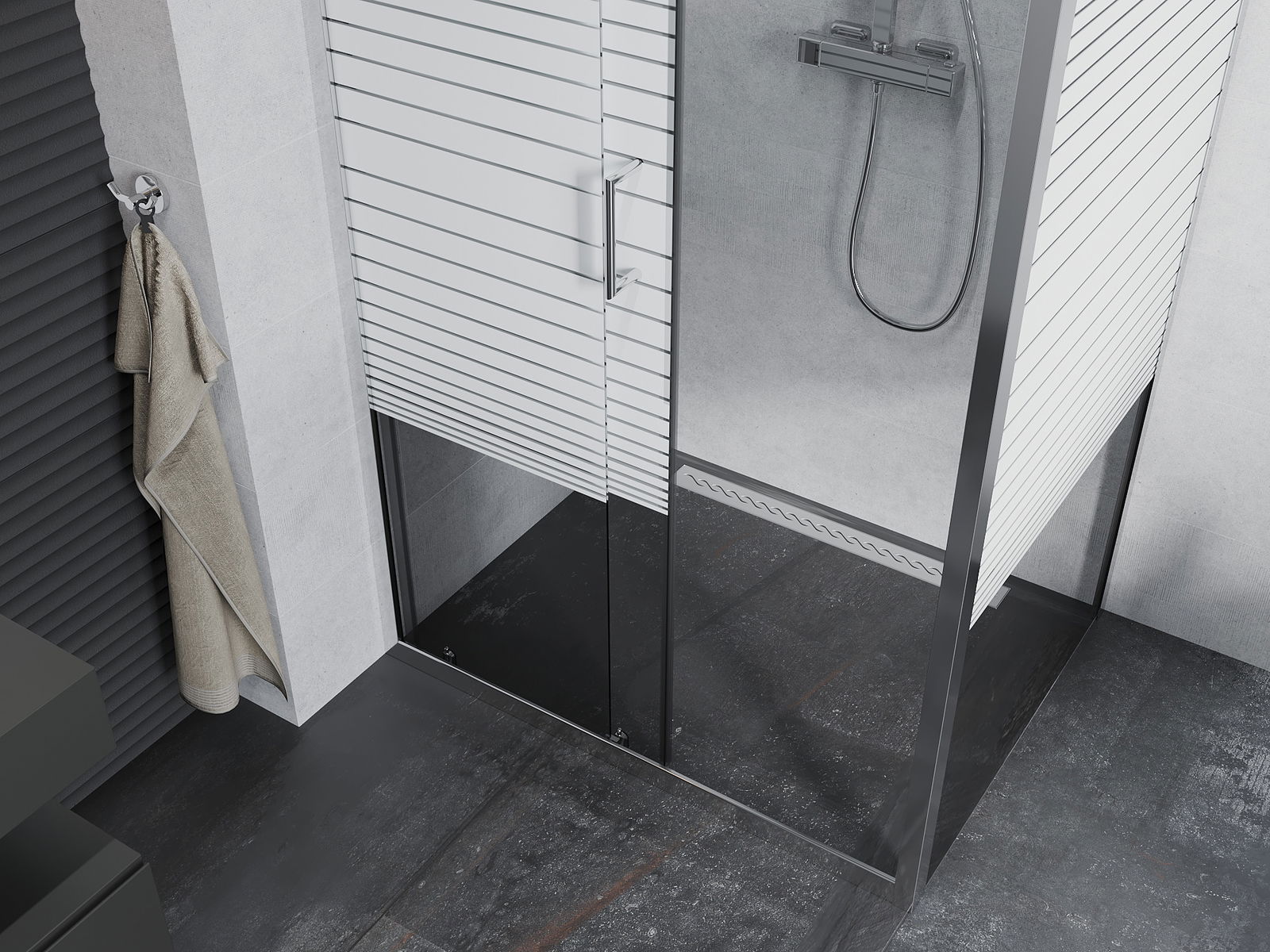 Mexen Apia 140 x 90 cm-es tolóajtós zuhanykabin, fehér csíkok, króm - 840-140-090-01-20