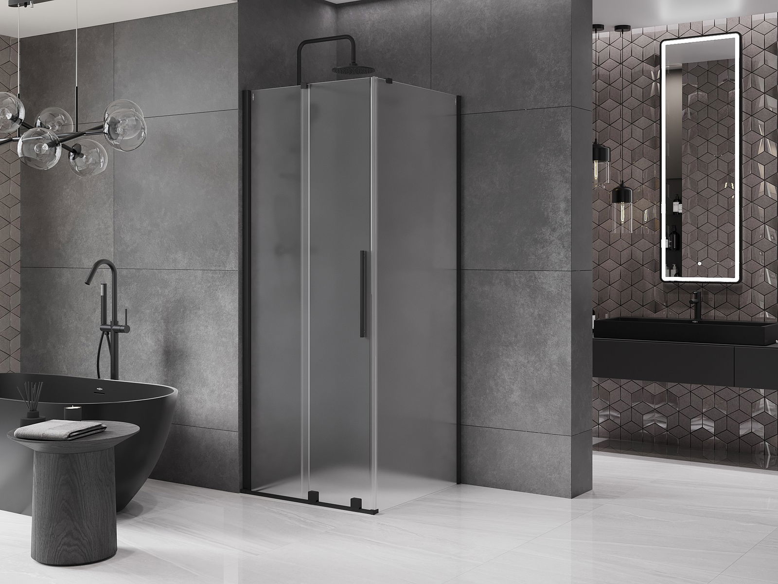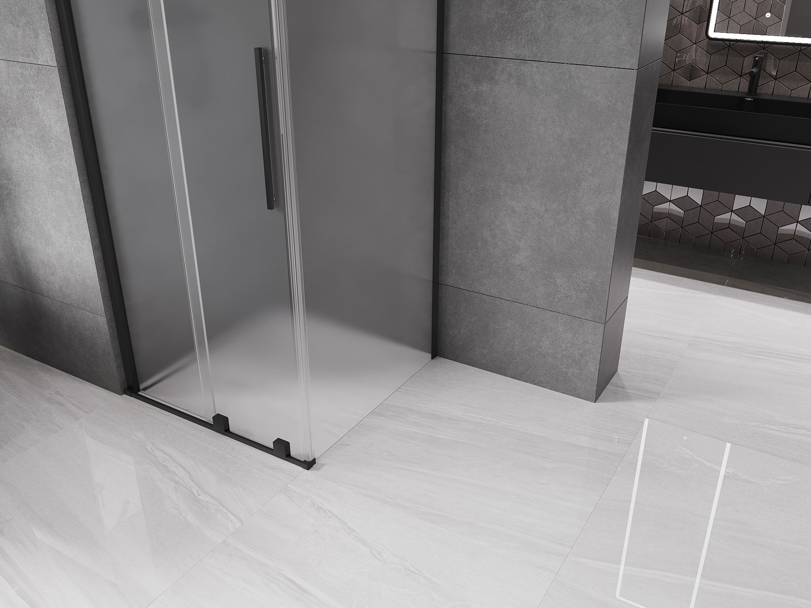 Mexen Velar 120 x 120 cm-es toló zuhanykabin, fagyott, fekete - 871-120-120-31-70
