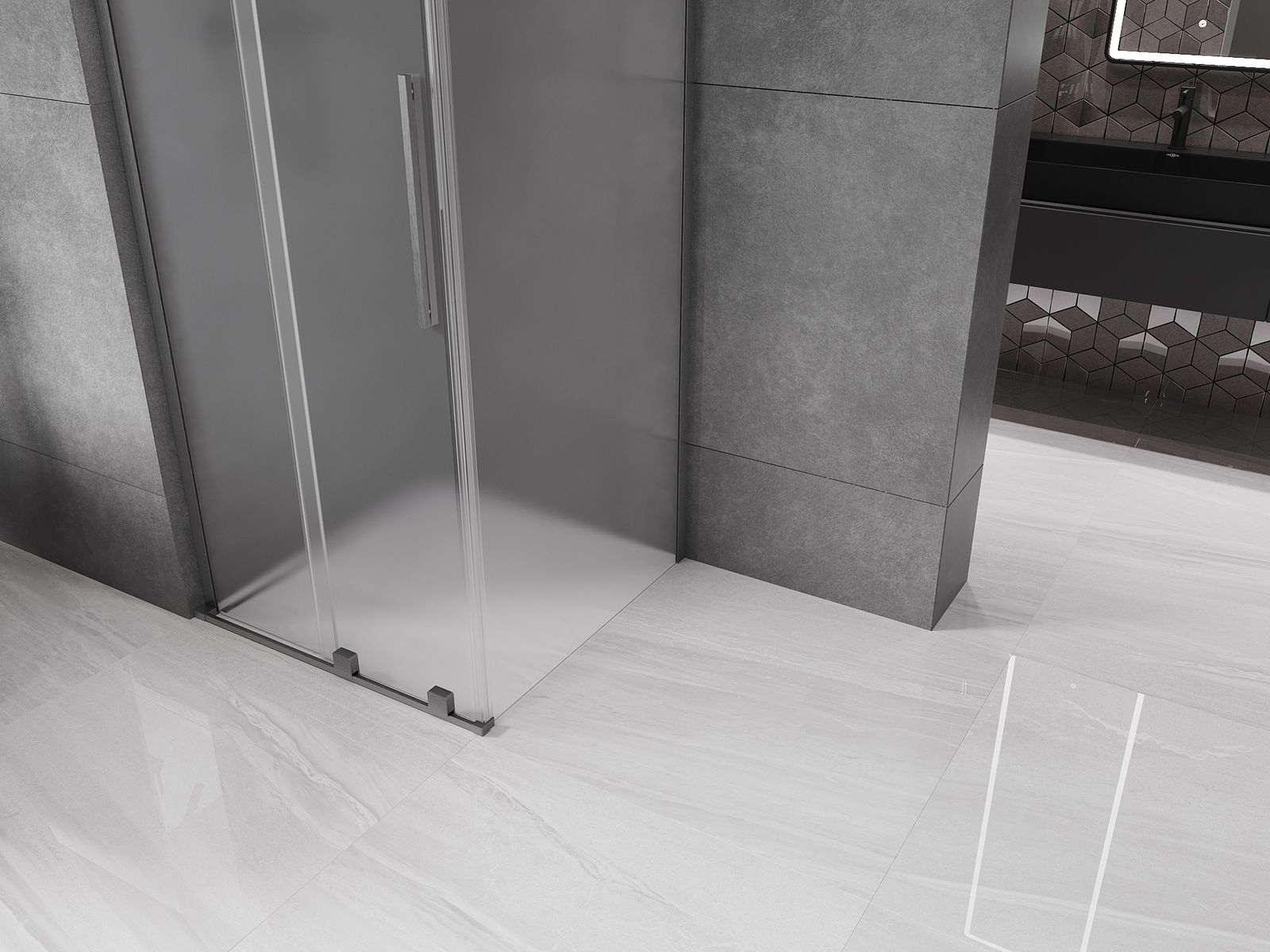Mexen Velar L tolóajtós zuhanykabin 90 x 90 cm, matt, gun szürke kefélt - 871-090-090-33-66