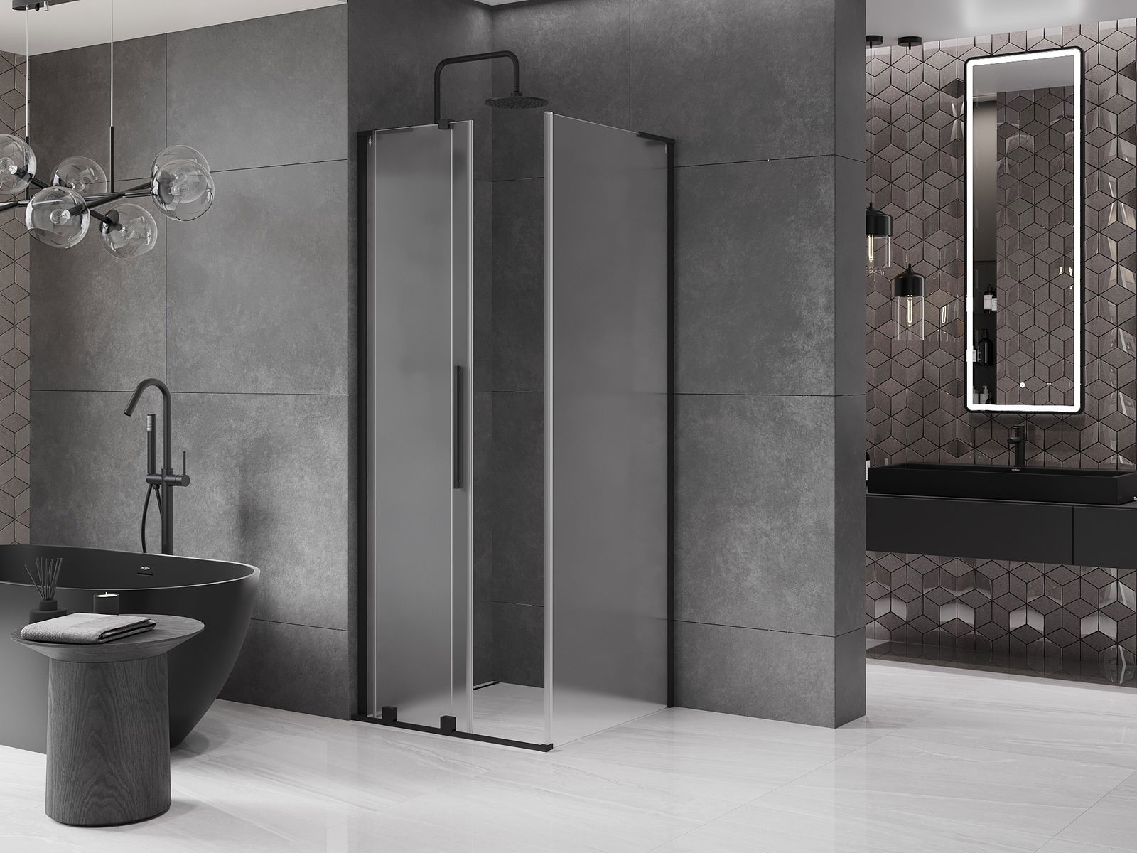 Mexen Velar L tolóajtós zuhanykabin 90 x 90 cm, matt, fekete - 871-090-090-33-70