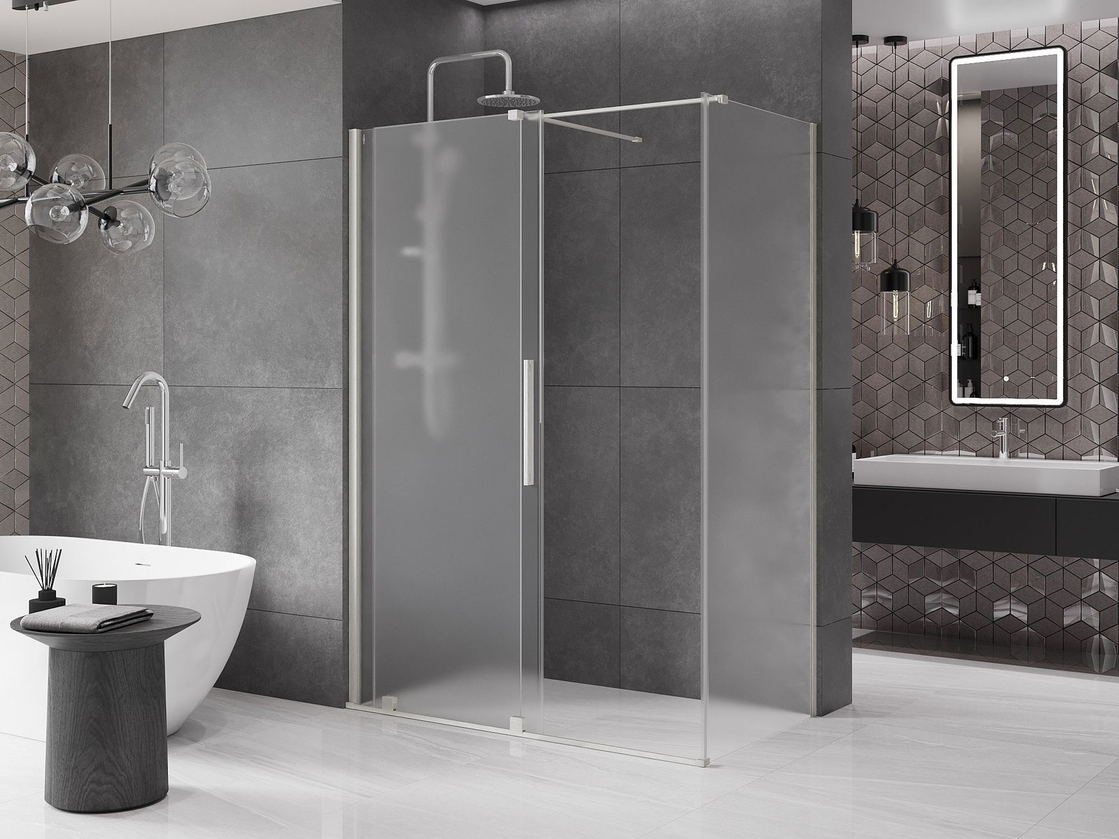 A praktikus és kényelmes fogantyú rozsdamentes acélból készült. A divatos forma a profilok színéhez igazított kivitelezéssel modern és stílusos megjelenést kölcsönöz az egésznek, kiemelve minden fürdőszoba esztétikáját.