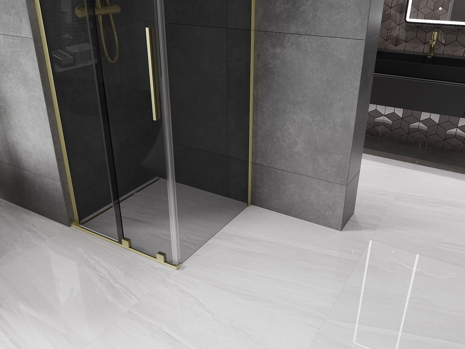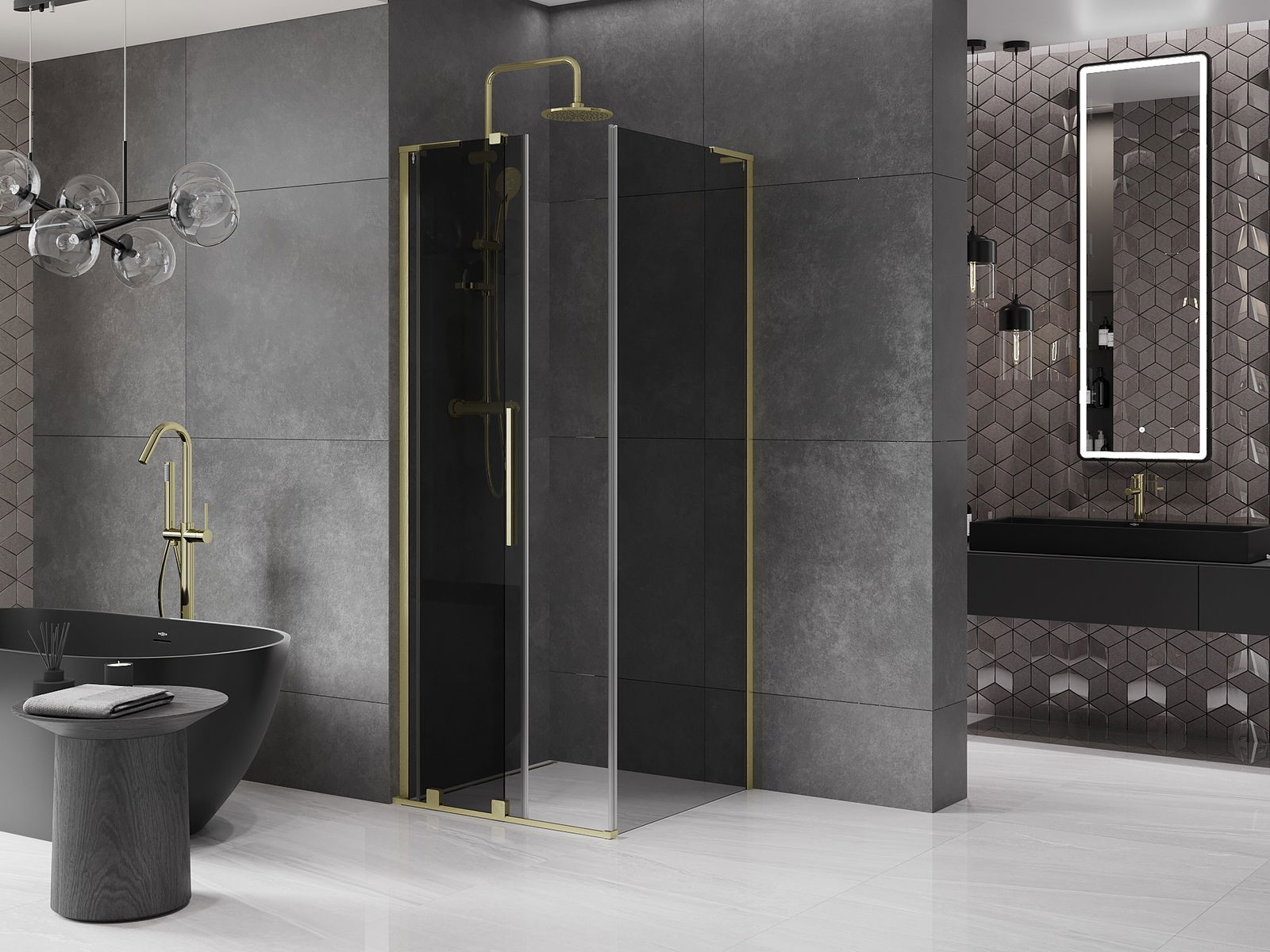 Mexen Velar L tolóajtós zuhanykabin 100 x 100 cm, grafit, arany szálcsiszolt - 871-100-100-43-55