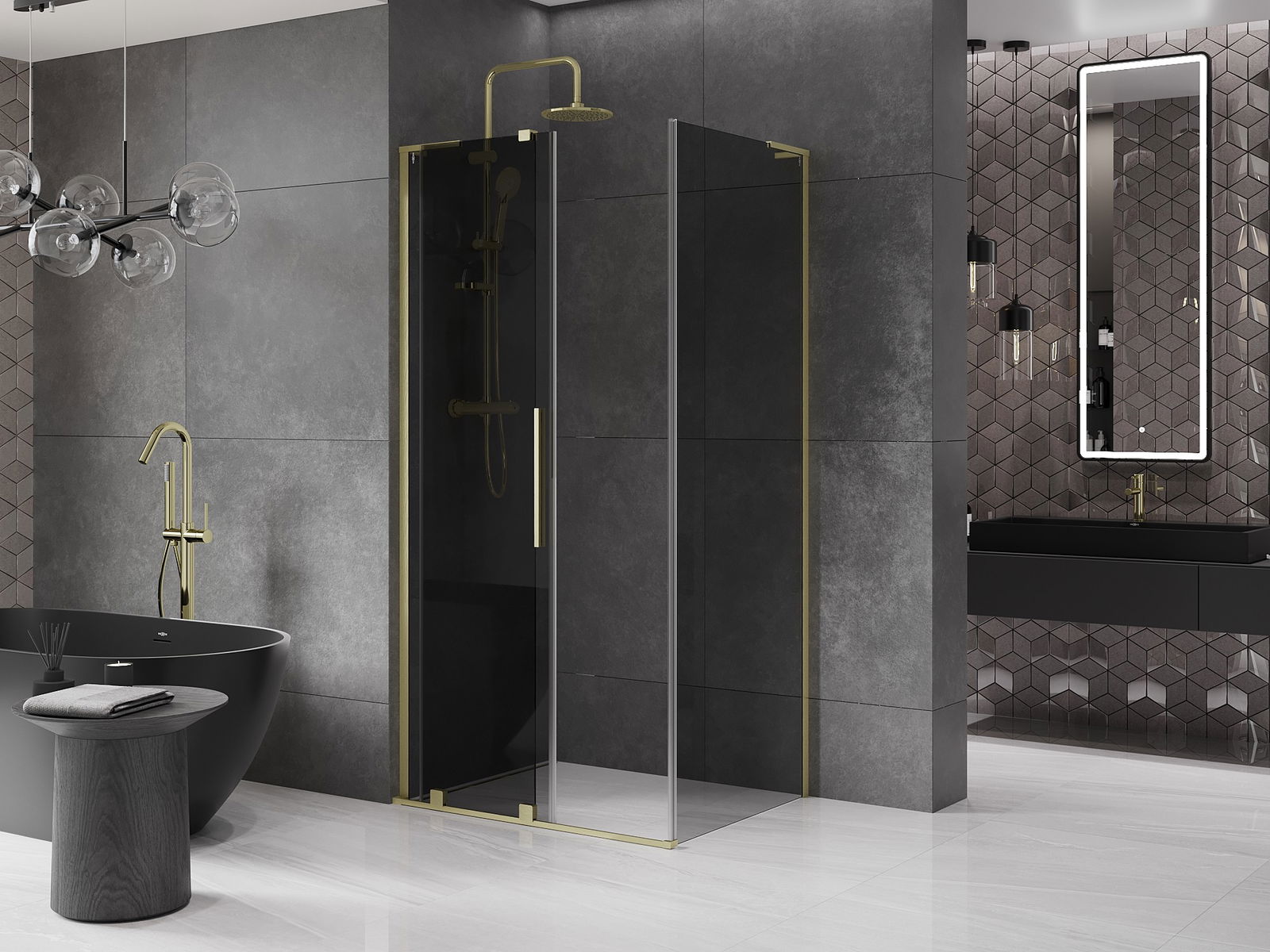 Mexen Velar L 120 x 85 cm-es tolóajtós zuhanykabin, grafit, arany szálcsiszolt - 871-120-085-43-55