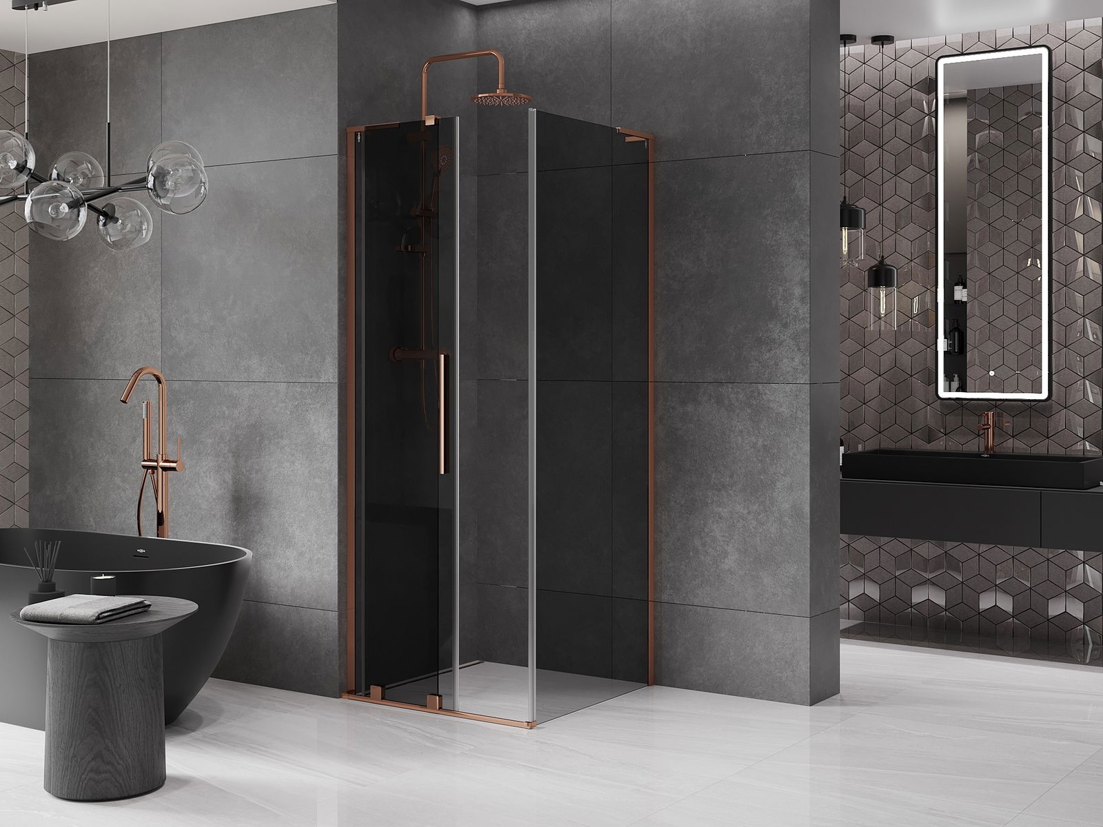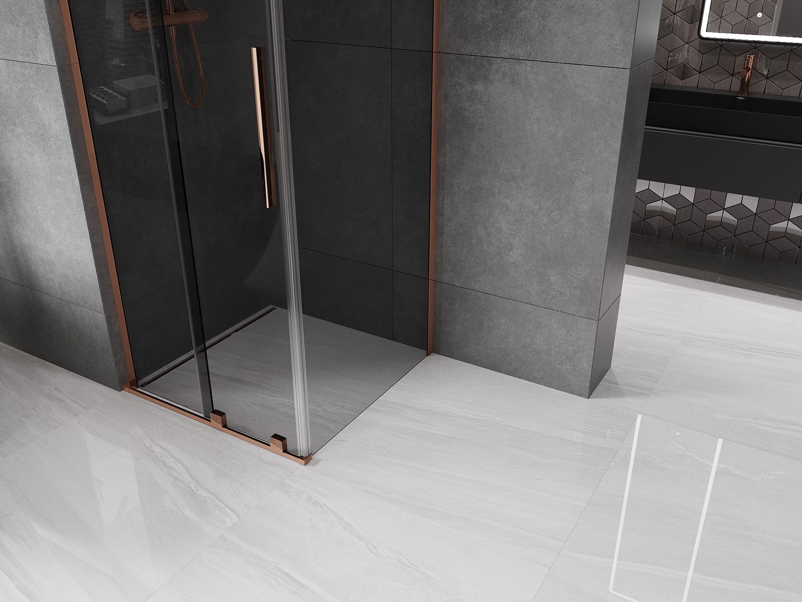 Mexen Velar L Tolóajtós zuhanykabin 120 x 120 cm, grafit, rózsaarany - 871-120-120-43-60