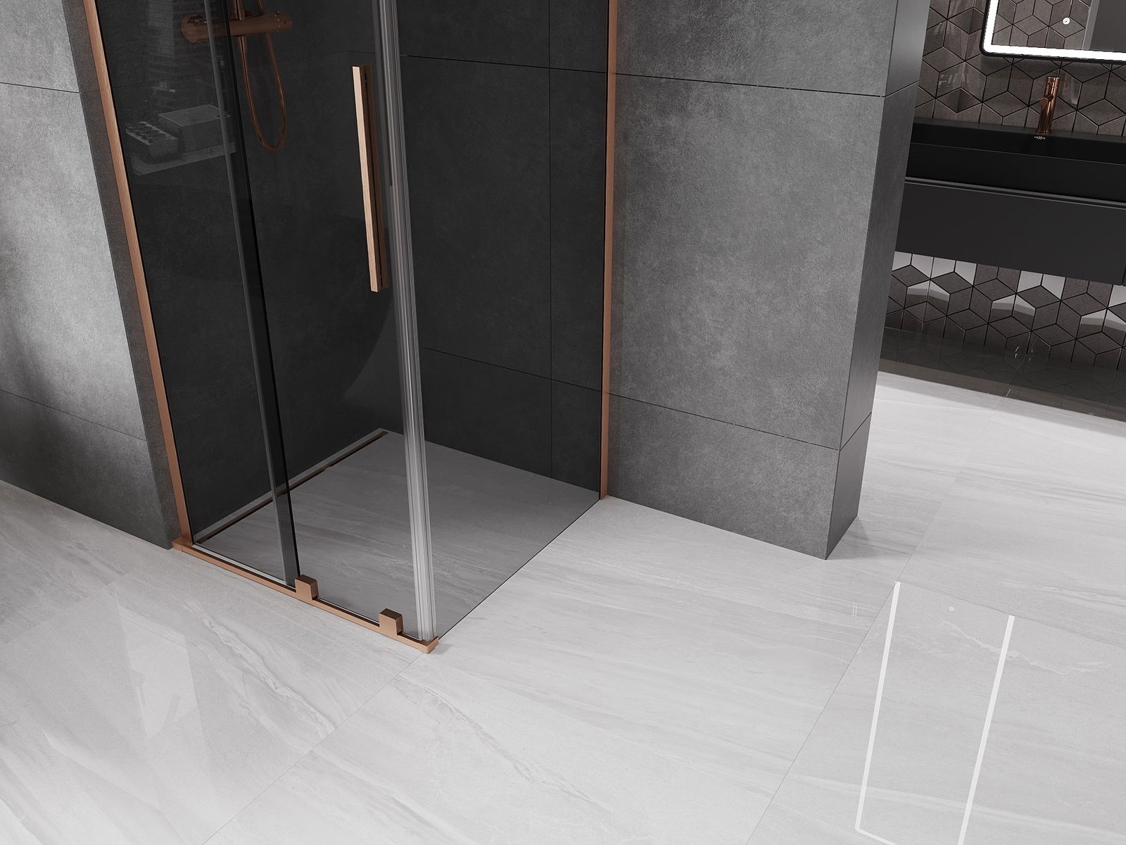 Mexen Velar L tolóajtós zuhanykabin 90 x 90 cm, grafit, szálcsiszolt réz - 871-090-090-43-65