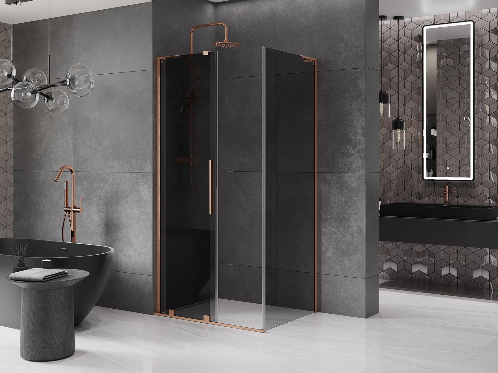 Mexen Velar L tolóajtós zuhanykabin 120 x 80 cm, grafit, kefélt réz - 871-120-080-43-65