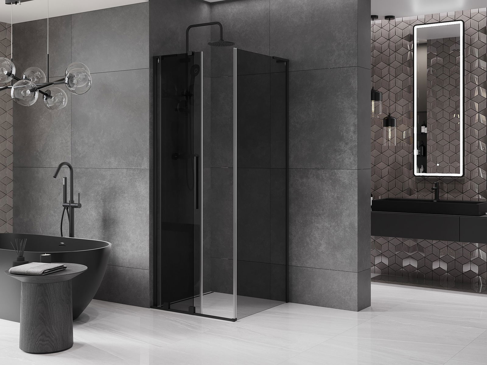 Mexen Velar L tolóajtós zuhanykabin 100 x 100 cm, grafit, fekete - 871-100-100-43-70
