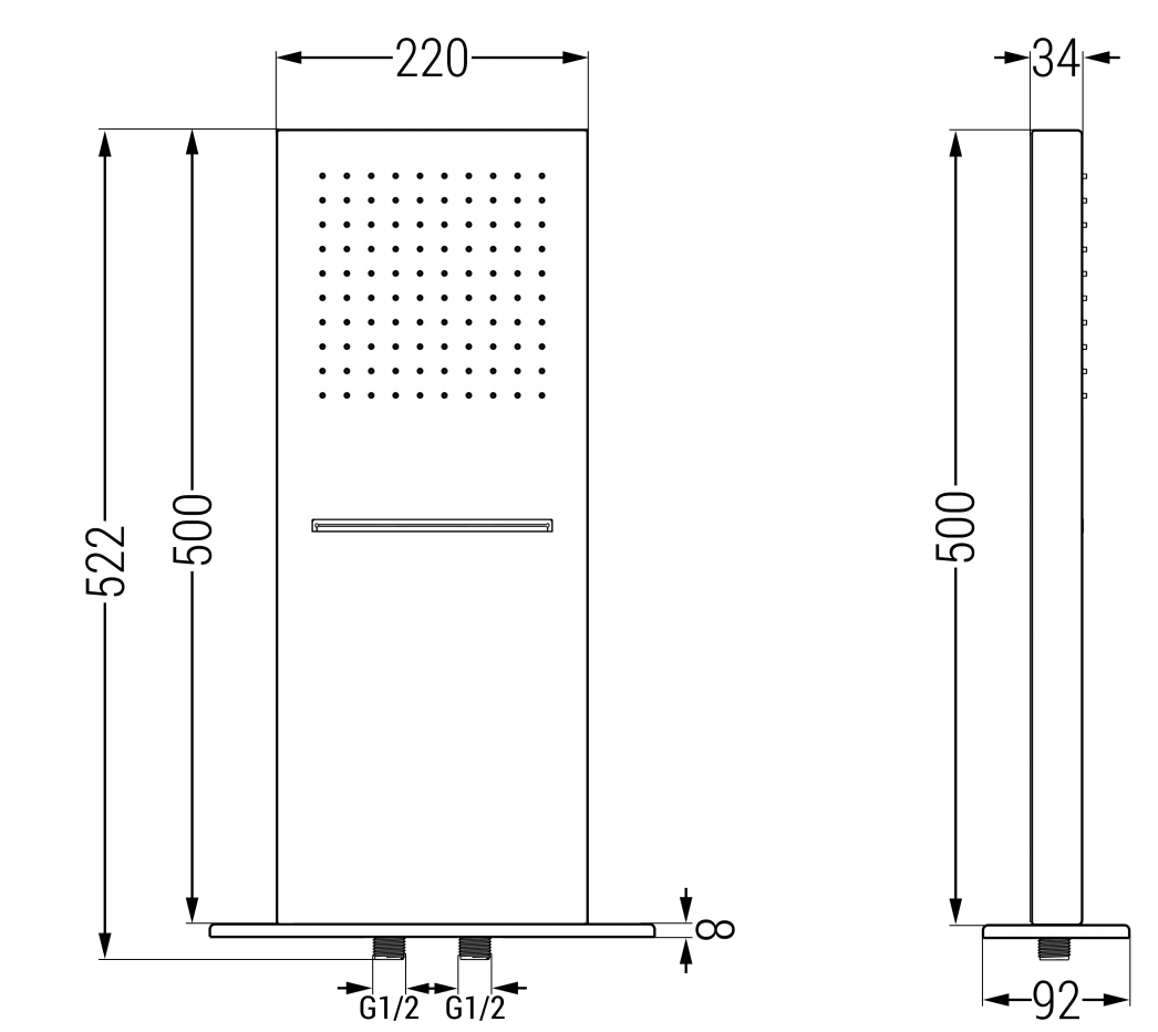 Az esővédő csak 8 mm vastag, ami rendkívül vékony megjelenést kölcsönöz neki. A vékony kialakítás tökéletesen alkalmazkodik a fürdőszoba modern belsejéhez, így benyomást kelt a könnyedségről. Kiváló választás a minimalista elrendezésekhez.