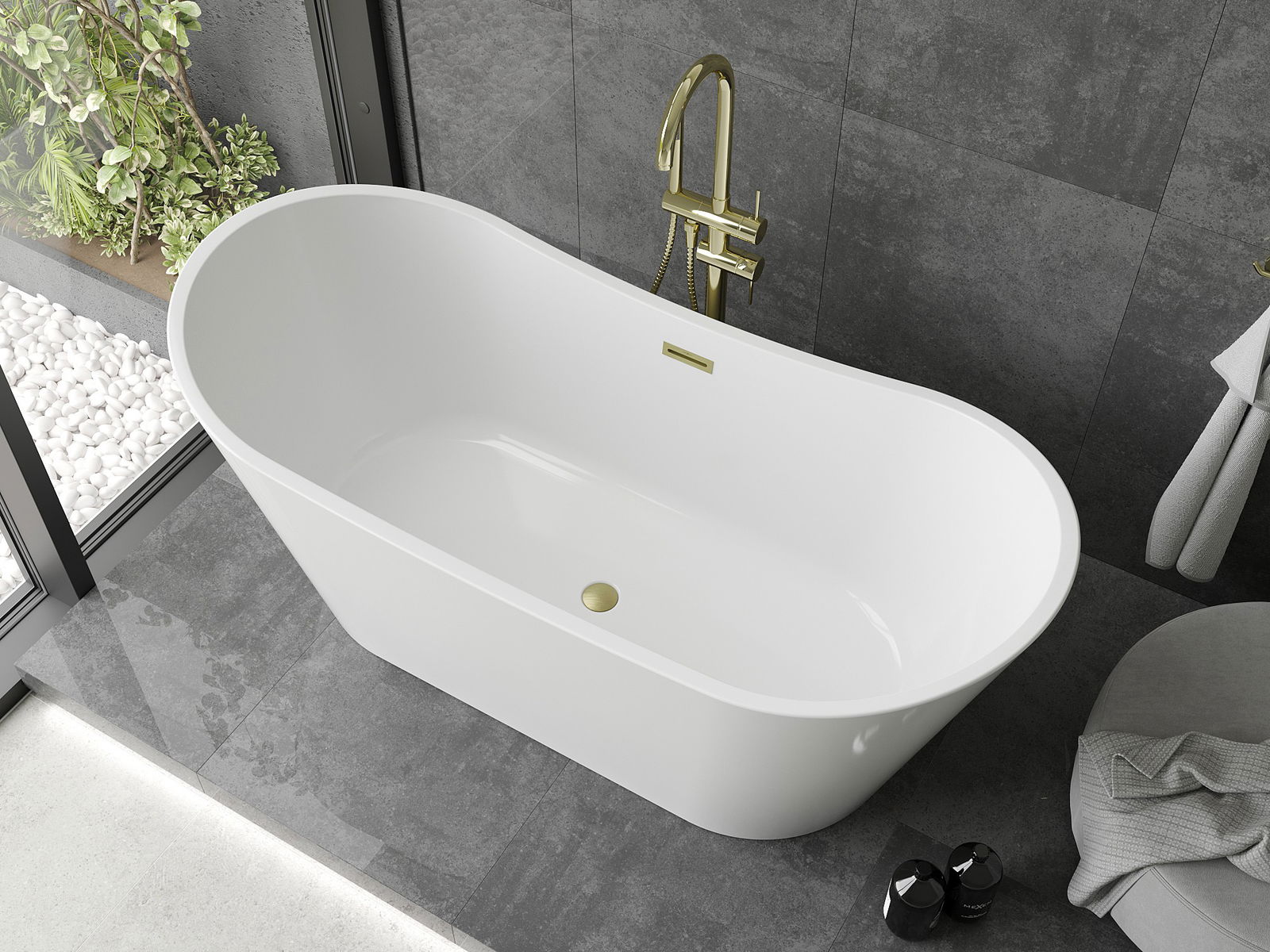 Mexen Montana szabadon álló kád 150 x 75 cm, fehér, arany kefés túlfolyóval - 52011507500-55