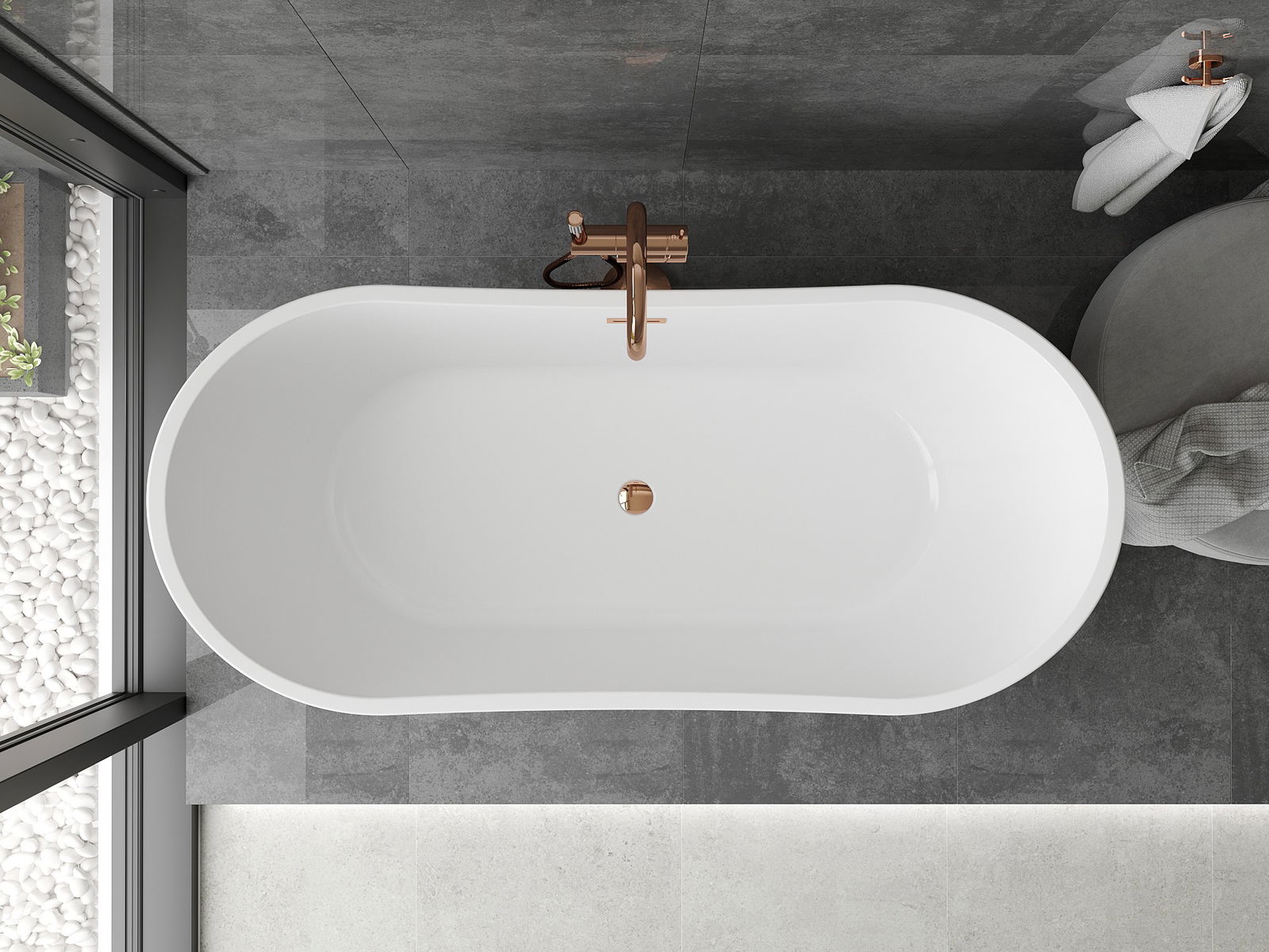 Mexen Montana szabadon álló fürdőkád 150 x 75 cm, fehér, rózsaarany túlfolyóval - 52011507500-60