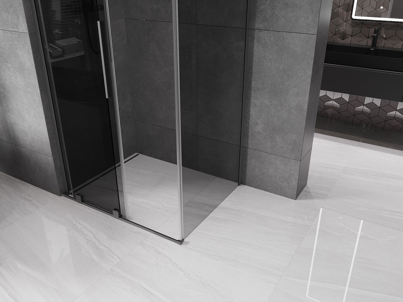 Mexen Velar L tolóajtós zuhanyfülke 120 x 70 cm, grafit, gun metal - 871-120-070-43-95