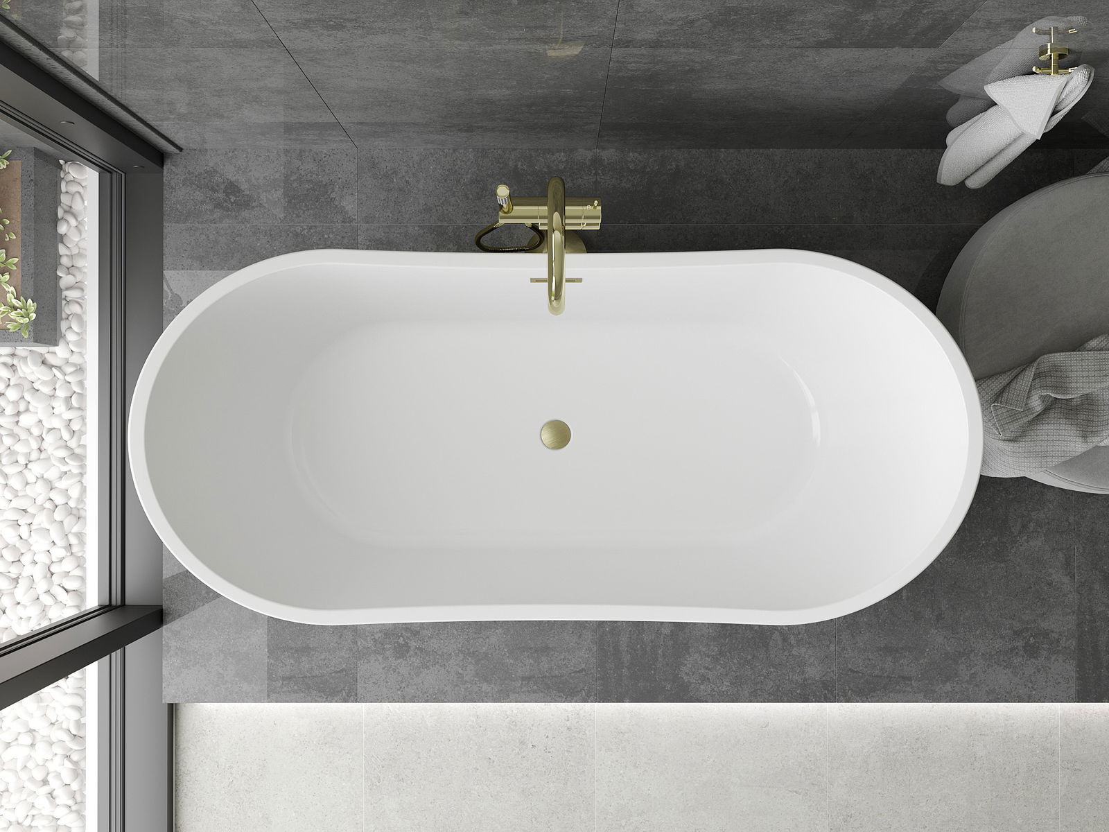 Mexen Montana szabadon álló kád 150 x 75 cm, fehér/fekete, arany szálcsiszolt túlfolyóval - 52011507575-55