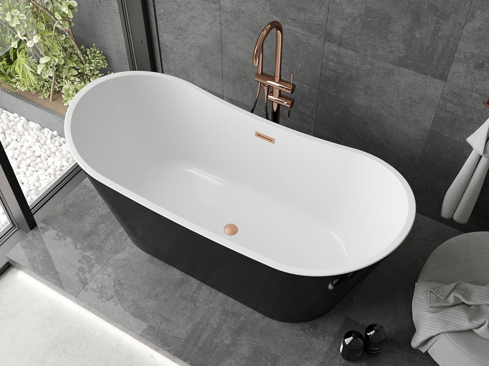Mexen Montana szabadon álló kád 150 x 75 cm, fehér/fekete, réz túlfolyó kefevegyes - 52011507575-65