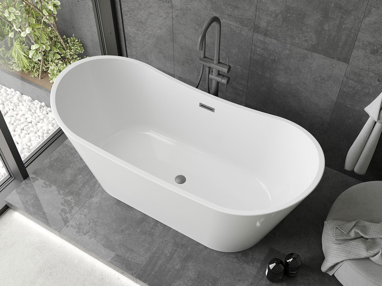 A Mexen Montana egy elegáns, szabadon álló kád, melynek mérete 170 x 80 cm; ideális a modern fürdőszobákba. Fehér színű szaniter akrilból készült, tartósságot és UV-állóságot biztosít. Ovális alakja és látványos gun metal felülete különleges stílust kölcsönöz. A kád túlfolyó nyílással és klik klak szifonnal felszerelt, ez növeli a használat kényelmét. A középső lefolyó és a praktikus, szabadon álló szerelés megkönnyíti a telepítést és a mindennapi használatot.