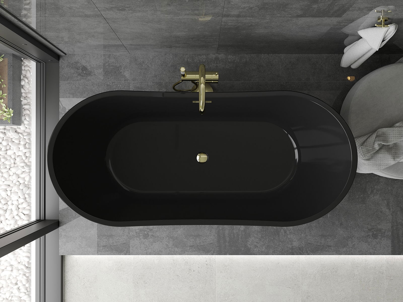 Mexen Montana szabadon álló kád 170 x 80 cm, fekete, arany túlfolyóval - 52011708070-50