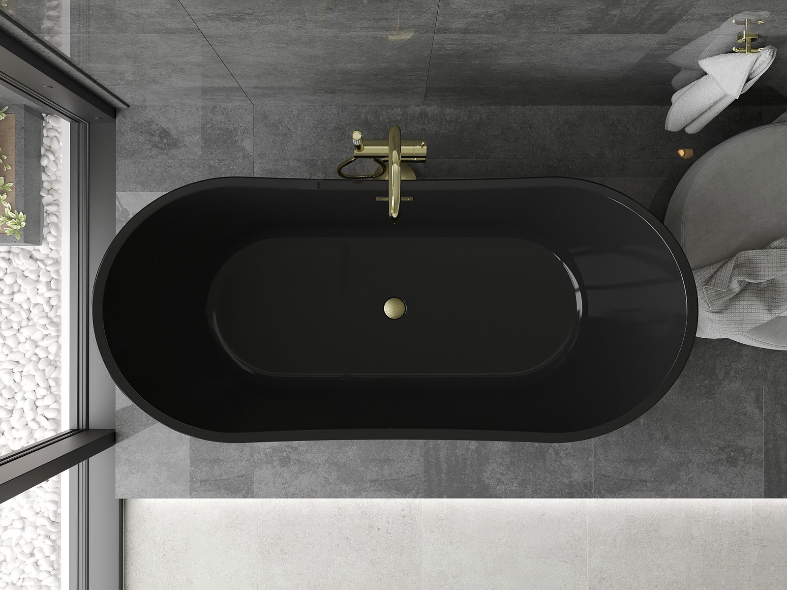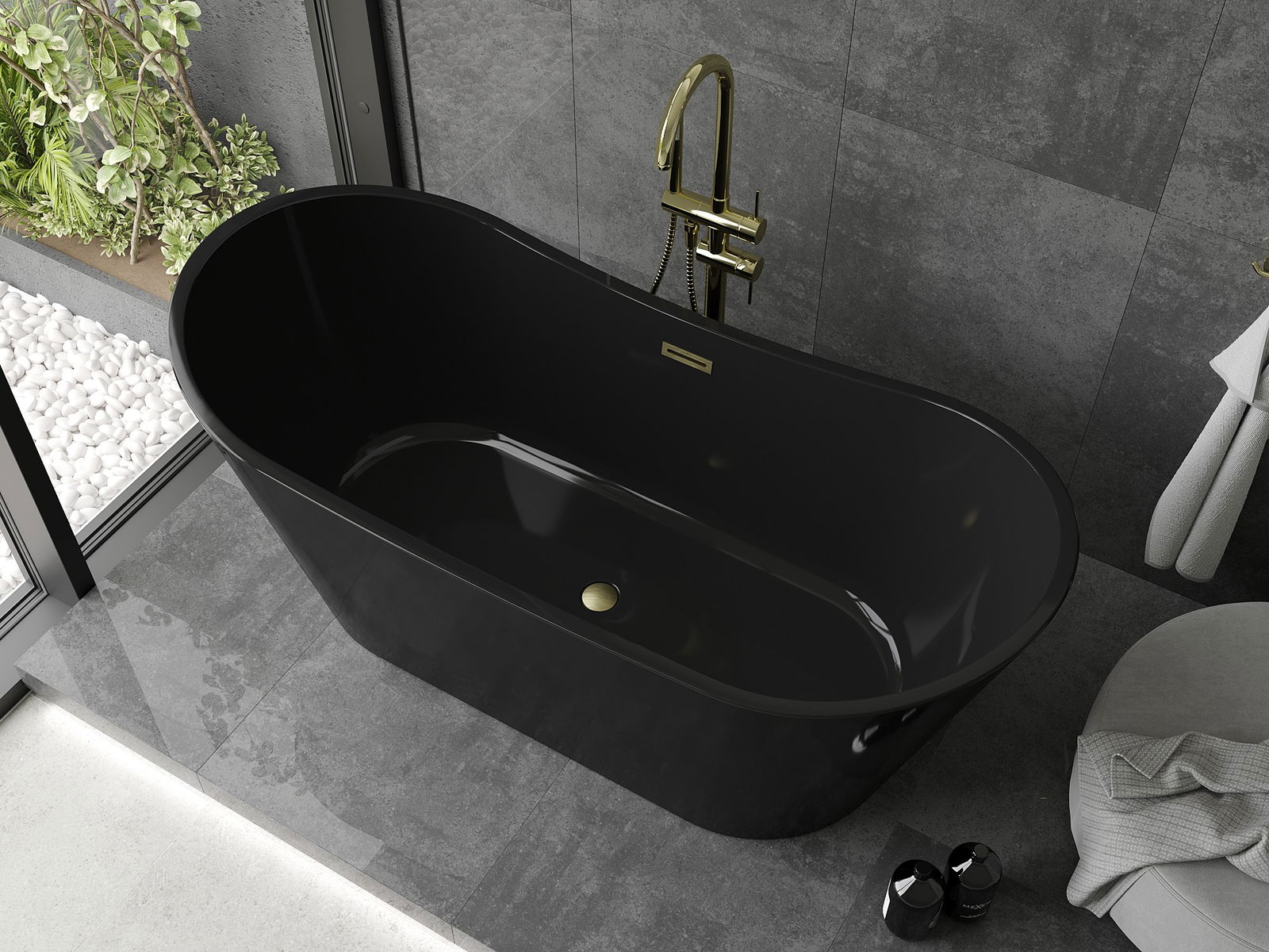 A Mexen Montana egy elegáns szabadon álló kád, méretei 170 x 80 cm és 44,5 cm mélységű, szaniter akrilból készült fekete színben arany szálcsiszolt kivitelben. Modern, ovális formája miatt tökéletesen illik különböző fürdőszobai elrendezésekhez. A kád ellenáll a mattosodásnak és az UV sugárzásnak, ami hosszú távú, esztétikus megjelenést biztosít. A készlet tartalmaz egy szifont és egy klik klak dugót, valamint egy praktikus túlfolyó nyílást.