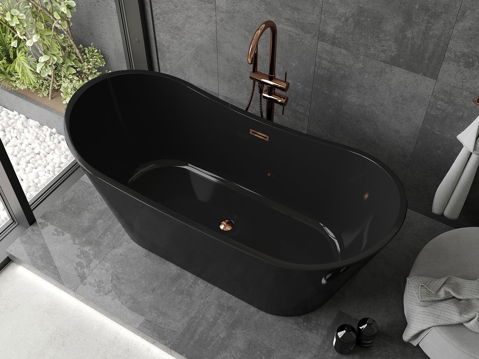 Mexen Montana 170 x 80 cm szabadon álló kád, fekete, rózsaarany túlfolyó - 52011708070-60