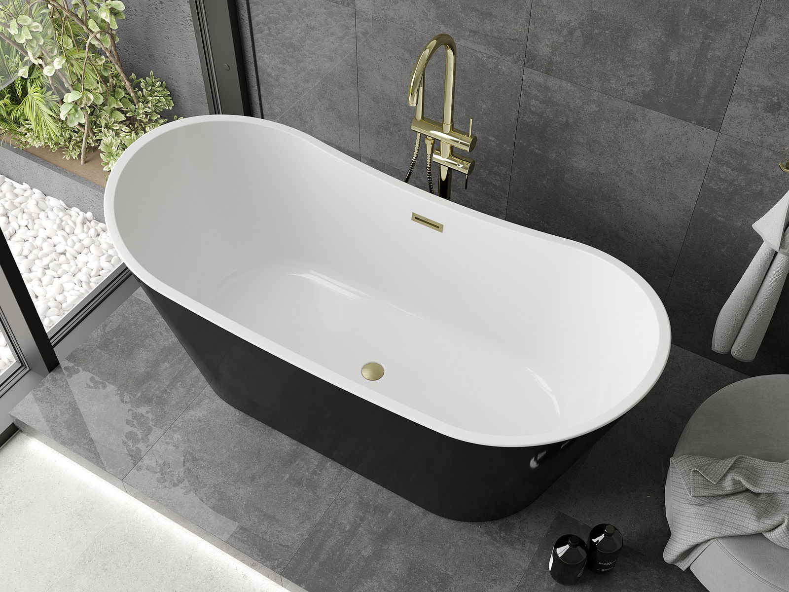 Mexen Montana szabadon álló kád 170 x 80 cm, fehér/fekete, arany kefe túlfolyó - 52011708075-55