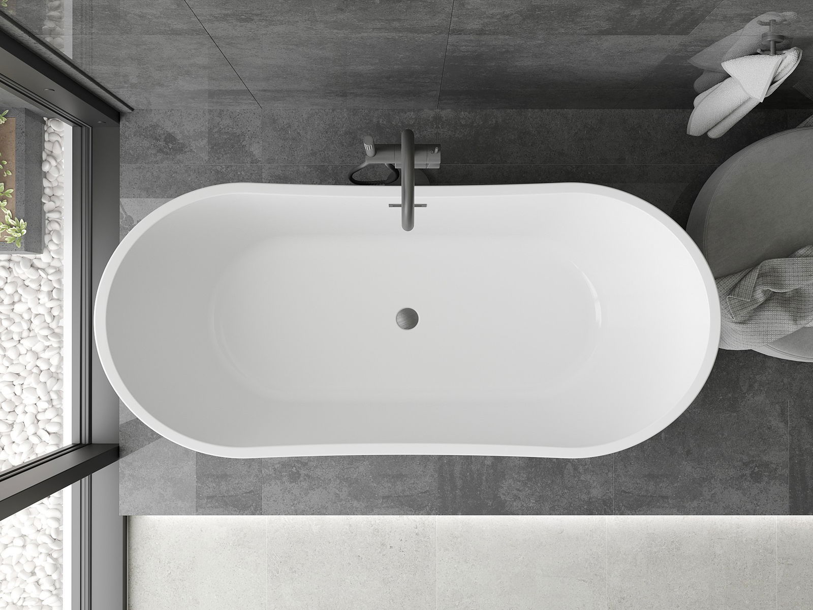 Mexen Montana szabadon álló kád 180 x 80 cm, fehér, gun gray csiszolt túlfolyóval - 52011808000-66