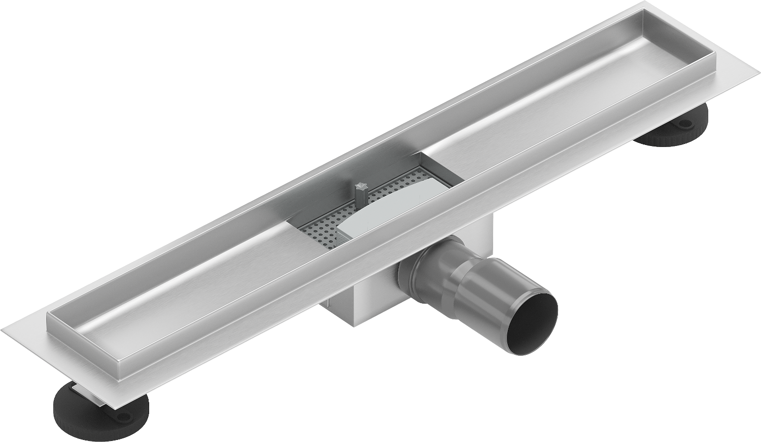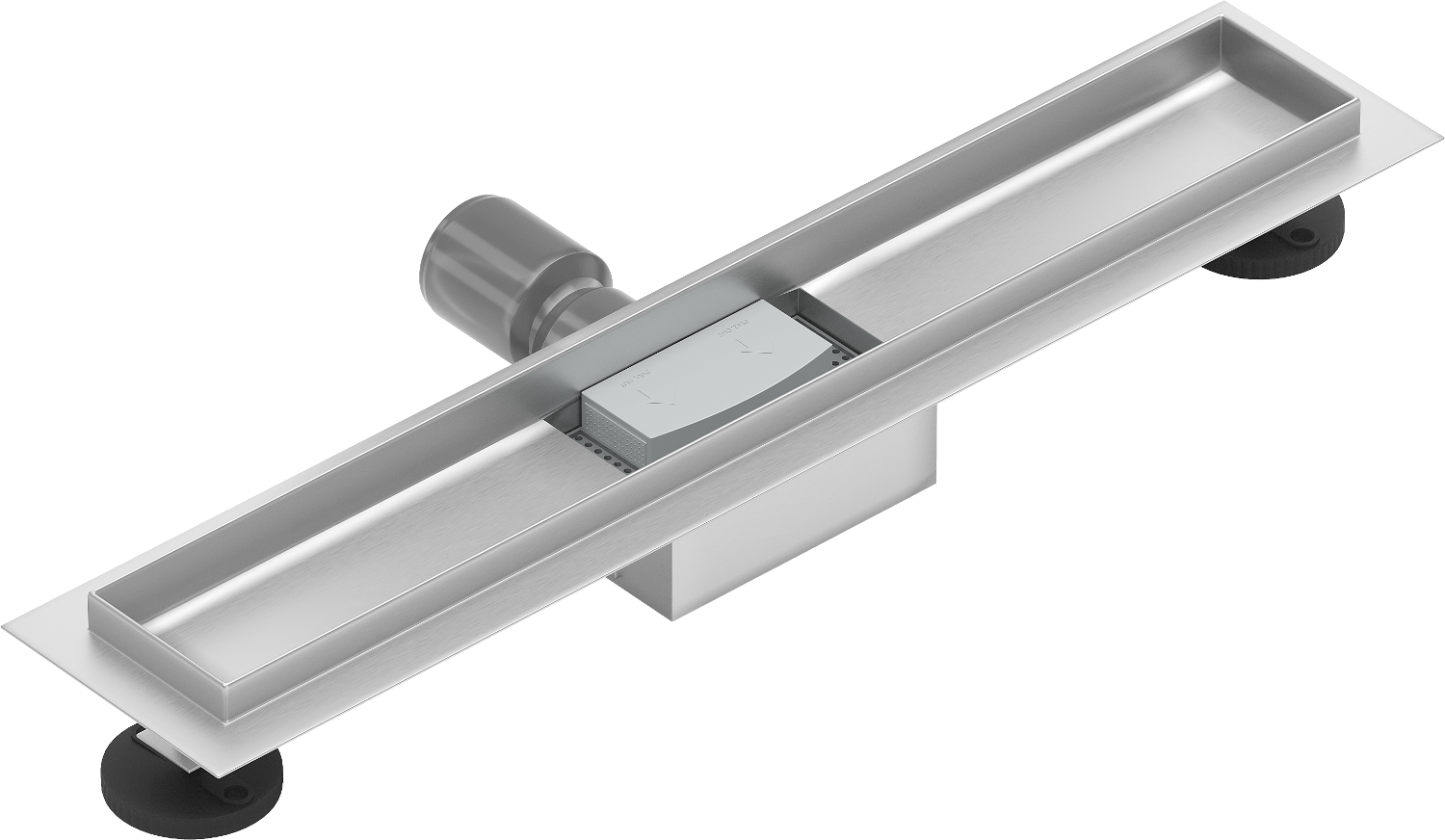 A lefolyó állítható lábakkal van felszerelve, amelyek lehetővé teszik a megfelelő lefolyó magasság és a szint egyenetlen felületén történő beállítását. Ilyen módon a csatorna még jobban megfelel egy adott fürdőszoba körülményeinek.