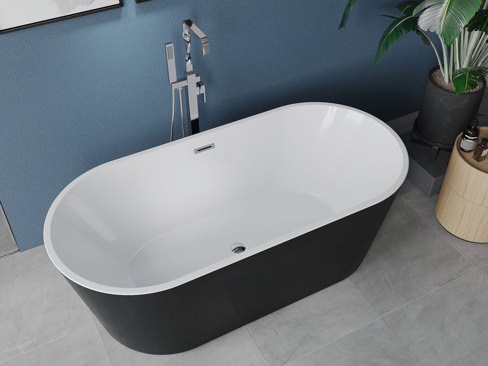 Mexen Luna szabadon álló kád 170 x 80 cm, fehér/fekete, króm túlfolyó - 52031708075-01