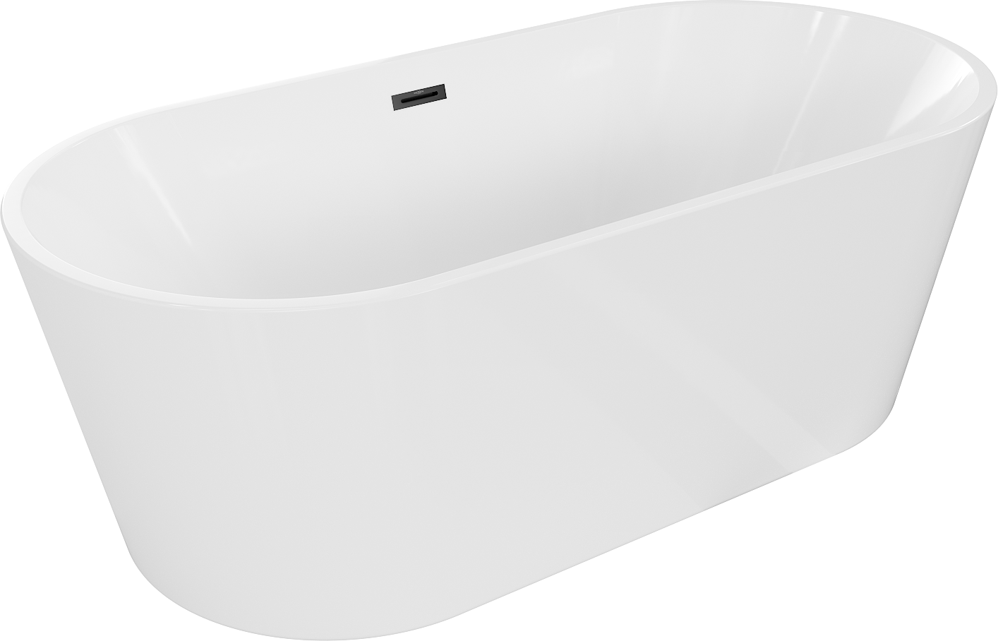 Mexen Luna szabadon álló kád 180 x 80 cm, fehér, fekete túlfolyó - 52031808000-70