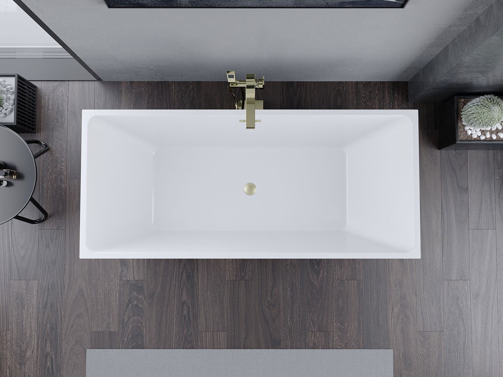 Mexen Lita szabadon álló kád 170 x 75 cm, fehér/fekete, arany szálcsiszolt túlfolyóval - 52121707575-55