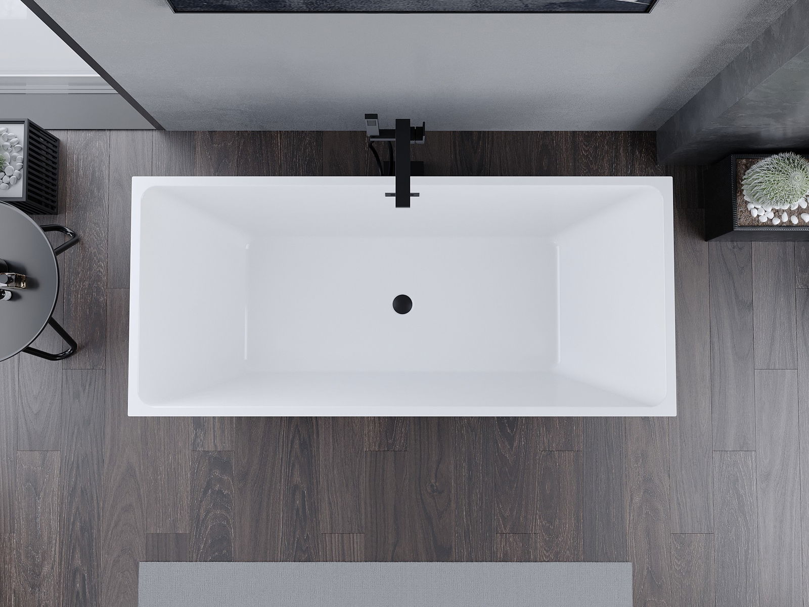 Mexen Lita szabadon álló fürdőkád 170 x 75 cm, fehér/fekete, fekete túlfolyó - 52121707575-70