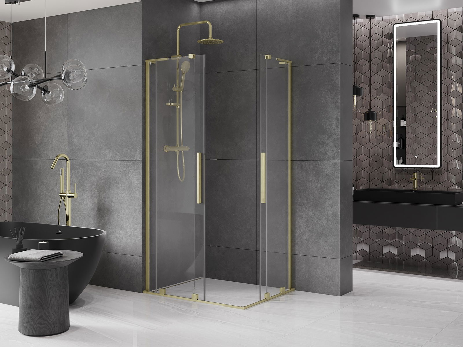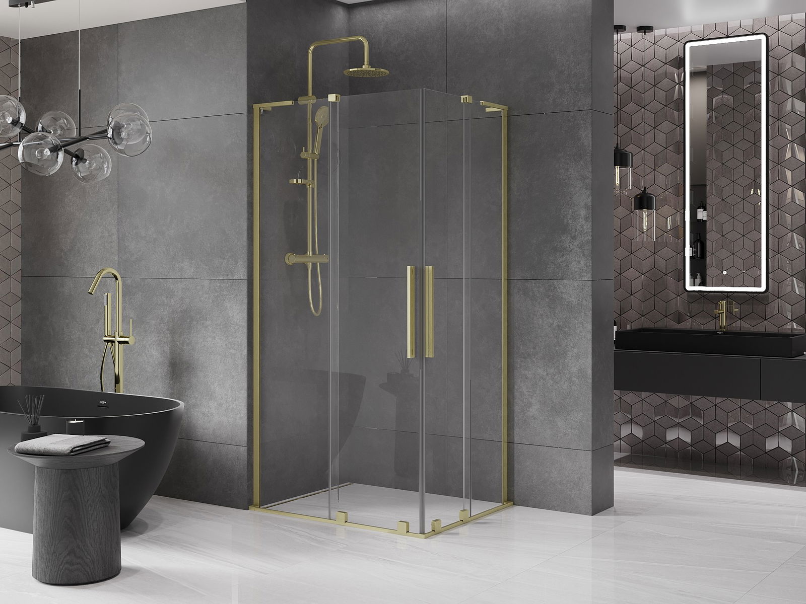 Mexen Velar L Duo tolóajtós zuhanykabin 100 x 90 cm, átlátszó, arany szálcsiszolt - 871-100-090-02-03-55