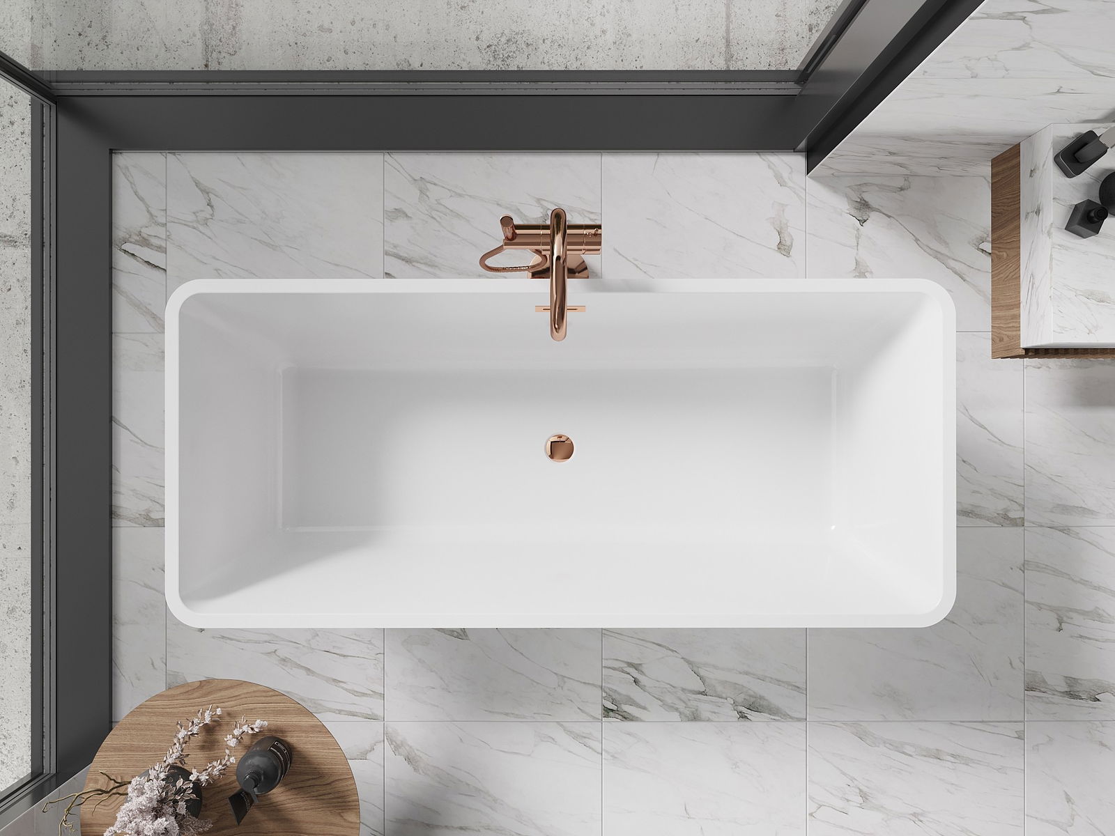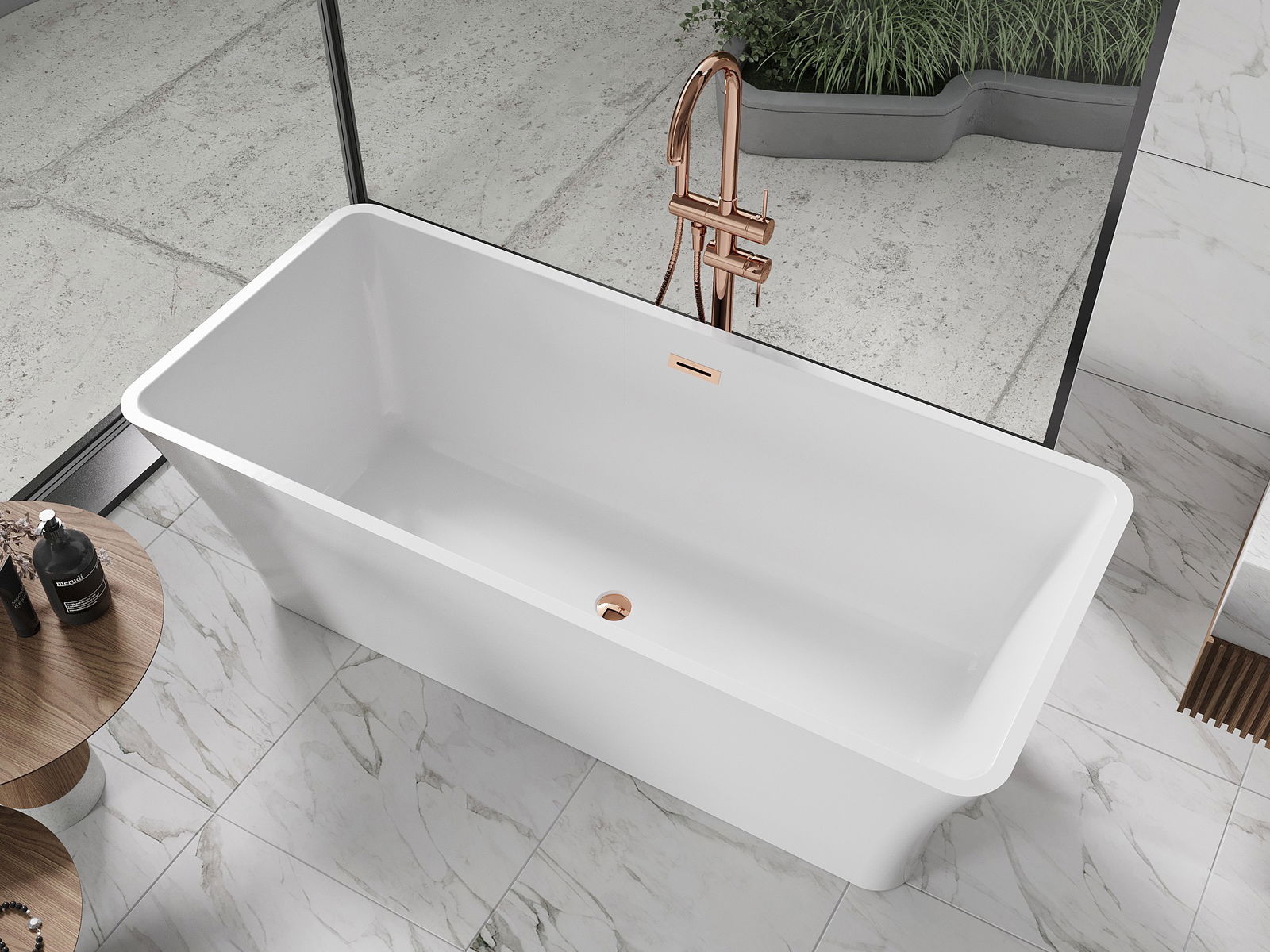 Mexen Tonia szabadon álló kád 170 x 75 cm, fehér, rózsaarany túlfolyó - 52171707500-60