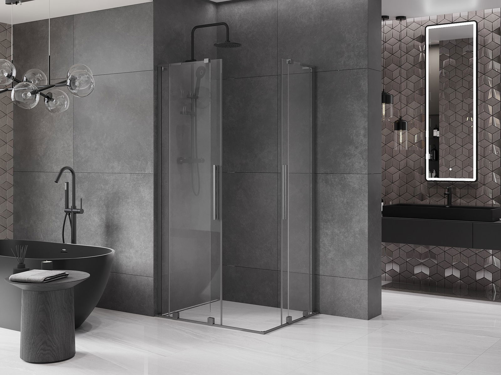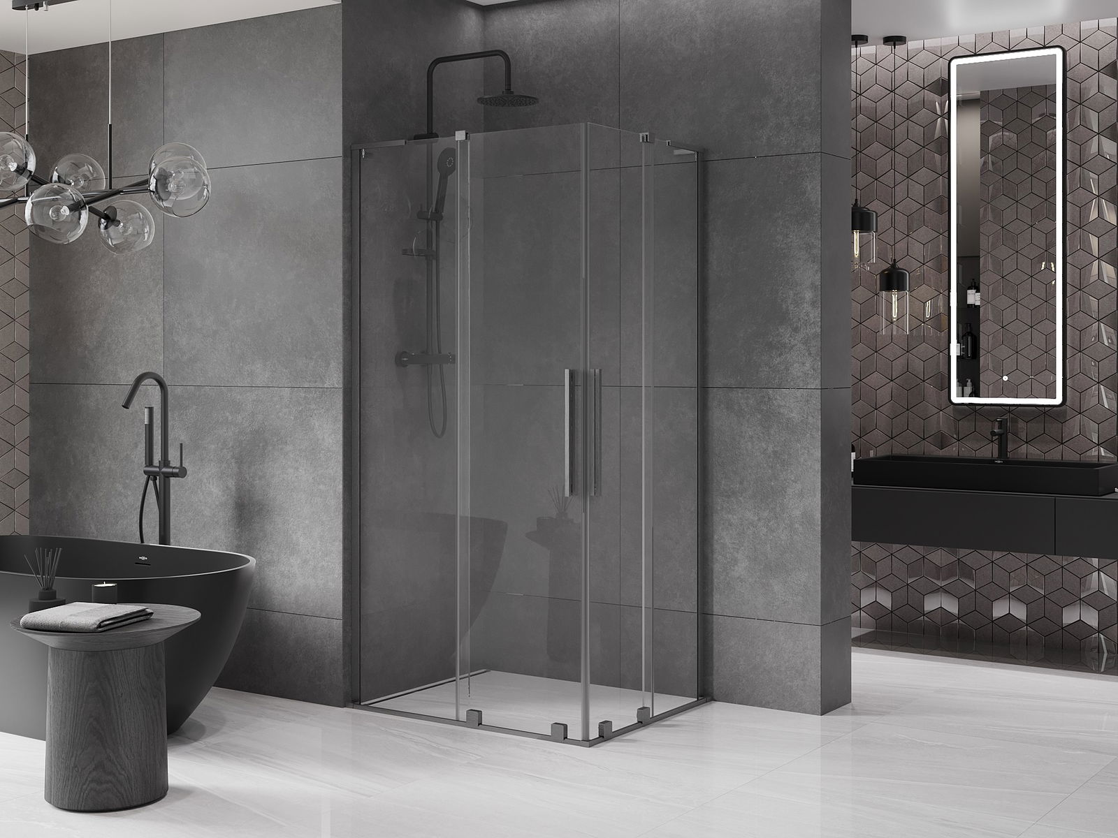 Mexen Velar L Duo tolóajtós zuhanykabin 100 x 90 cm, átlátszó, gun gray csiszolt - 871-100-090-02-03-66