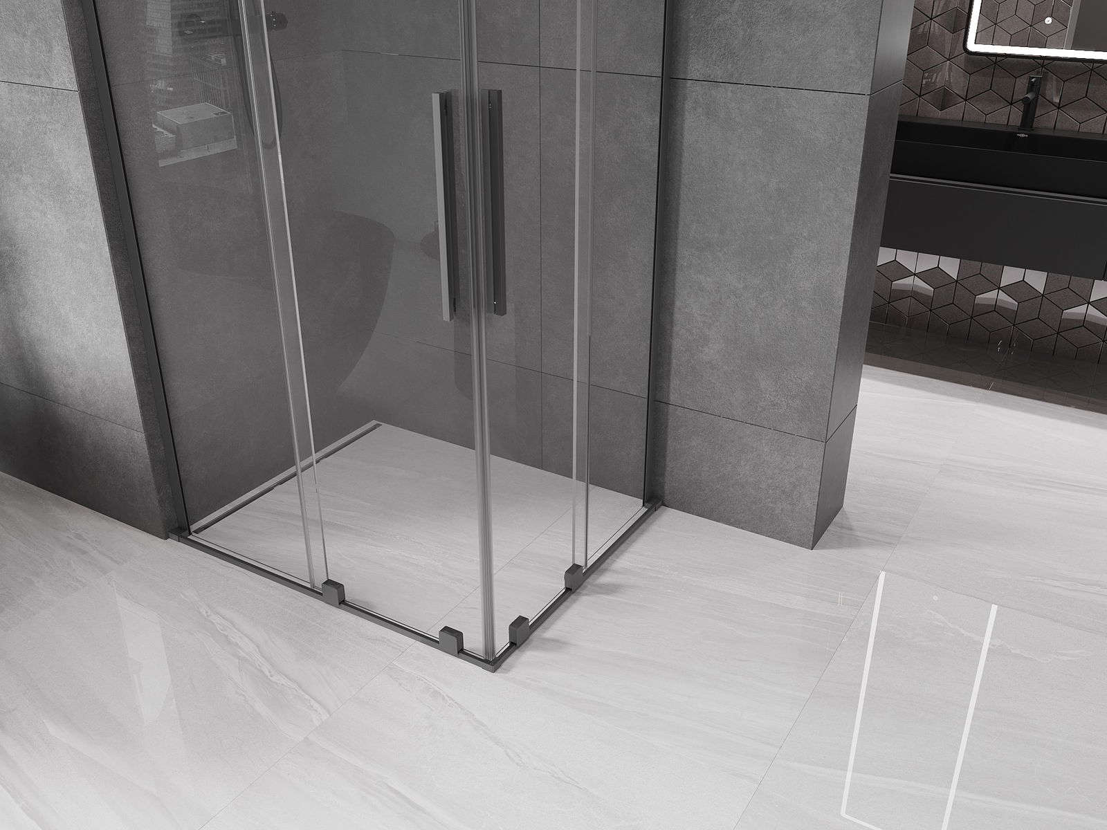 Mexen Velar L Duo tolóajtós zuhanykabin 100 x 90 cm, átlátszó, gun metal - 871-100-090-02-03-95