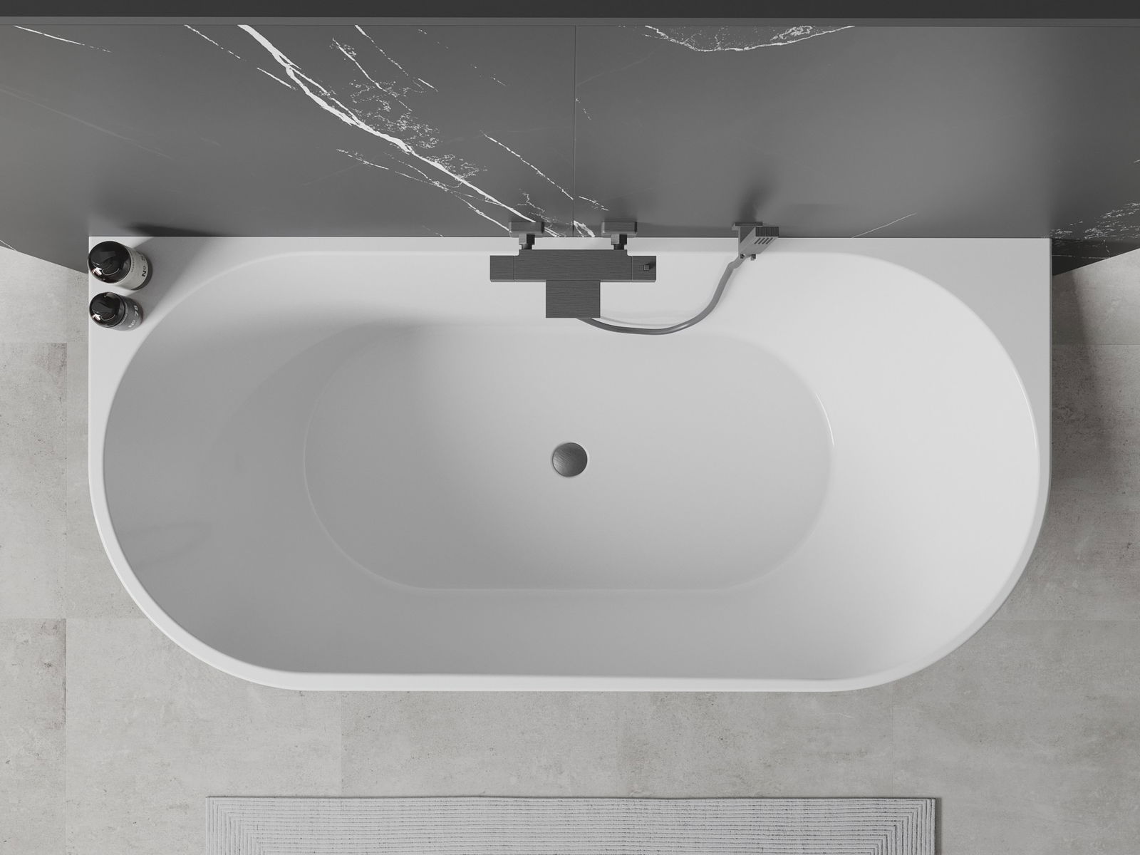 Mexen Oval Önálló álló kád fal mellé 170 x 80 cm, fehér, gun gray kefélt túlfolyóval - 52671708000-66