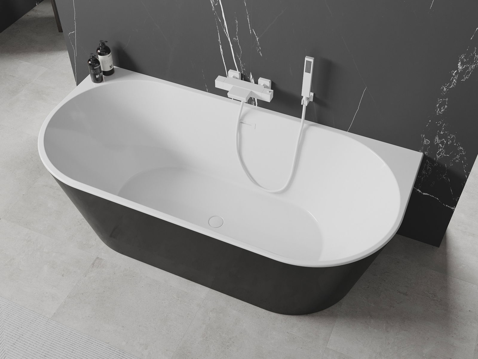 Mexen Oval szabadon álló fali kád 180 x 80 cm, fehér/fekete, fehér túlfolyó - 52671808075-20