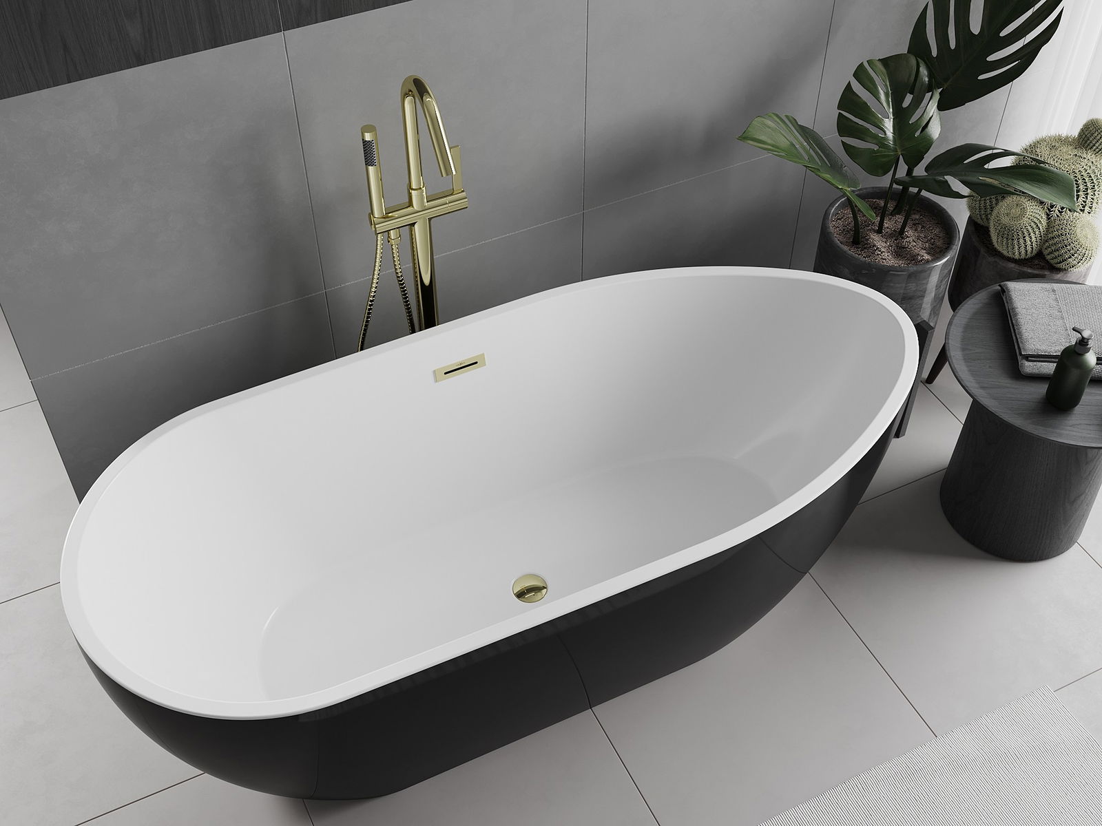 A Mexen Eos egy szabadon álló kád, melynek méretei 170 x 75 cm, ideális a modern fürdőszobákba. Elegáns fehér-fekete színvilágának és arany díszítésének köszönhetően különleges stílust ad bármely enteriőrnek. Tartós szaniter akrilból készült, a kád ellenáll a mattulásnak és UV-sugárzásnak, mely hosszú távú fényt biztosít. Az ovális forma és fényes felület kényelmes használatot nyújt, a túlfolyó nyílás és a mellékelt szifon pedig növeli a funkcionalitást. Elegancia és modernség egyben.