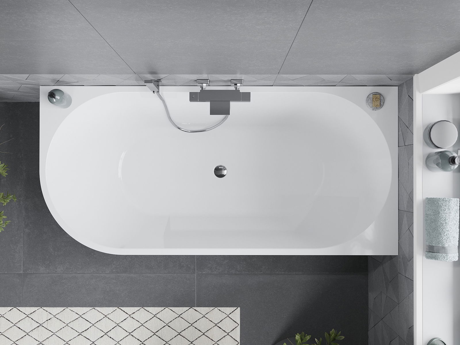 Mexen Mia szabadon álló sarokkád jobb 150 x 75 cm, fehér, krómozott túlfolyó - 52691507500P-01