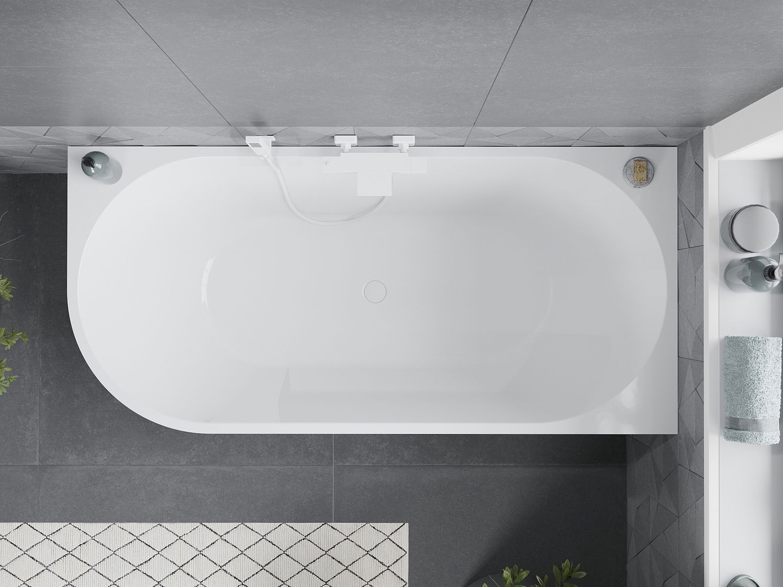 Mexen Mia szabadon álló sarokkád jobb 150 x 75 cm, fehér, fehér túlfolyó - 52691507500P-20