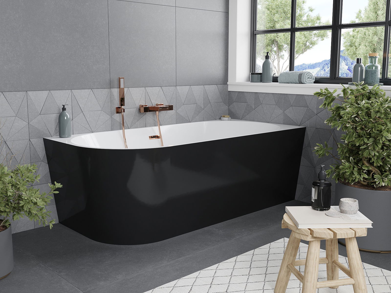 Mexen Mia szabadon álló sarokkád jobb oldali 150 x 75 cm, fehér/fekete, túlfolyó rózsaarany - 52691507575P-60