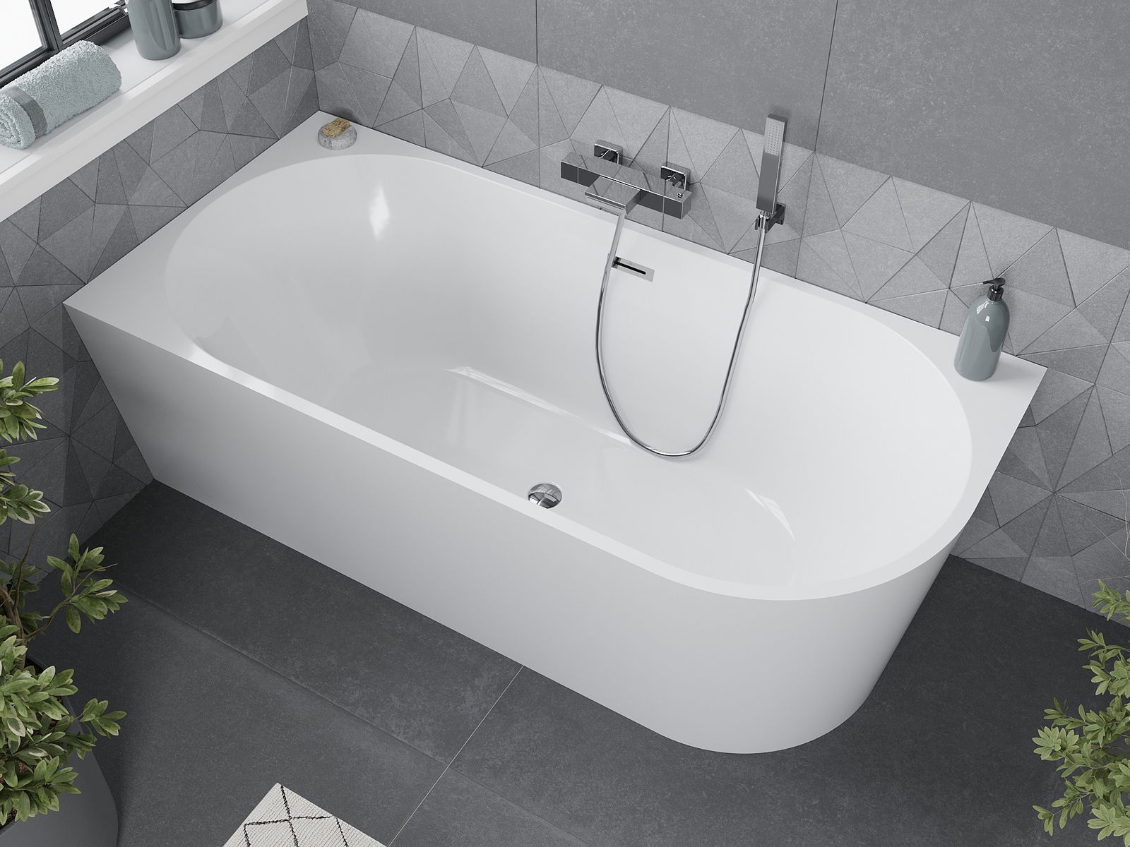 Mexen Mia szabadon álló sarokkád balos 160 x 75 cm, fehér, króm túlfolyó - 52691607500L-01