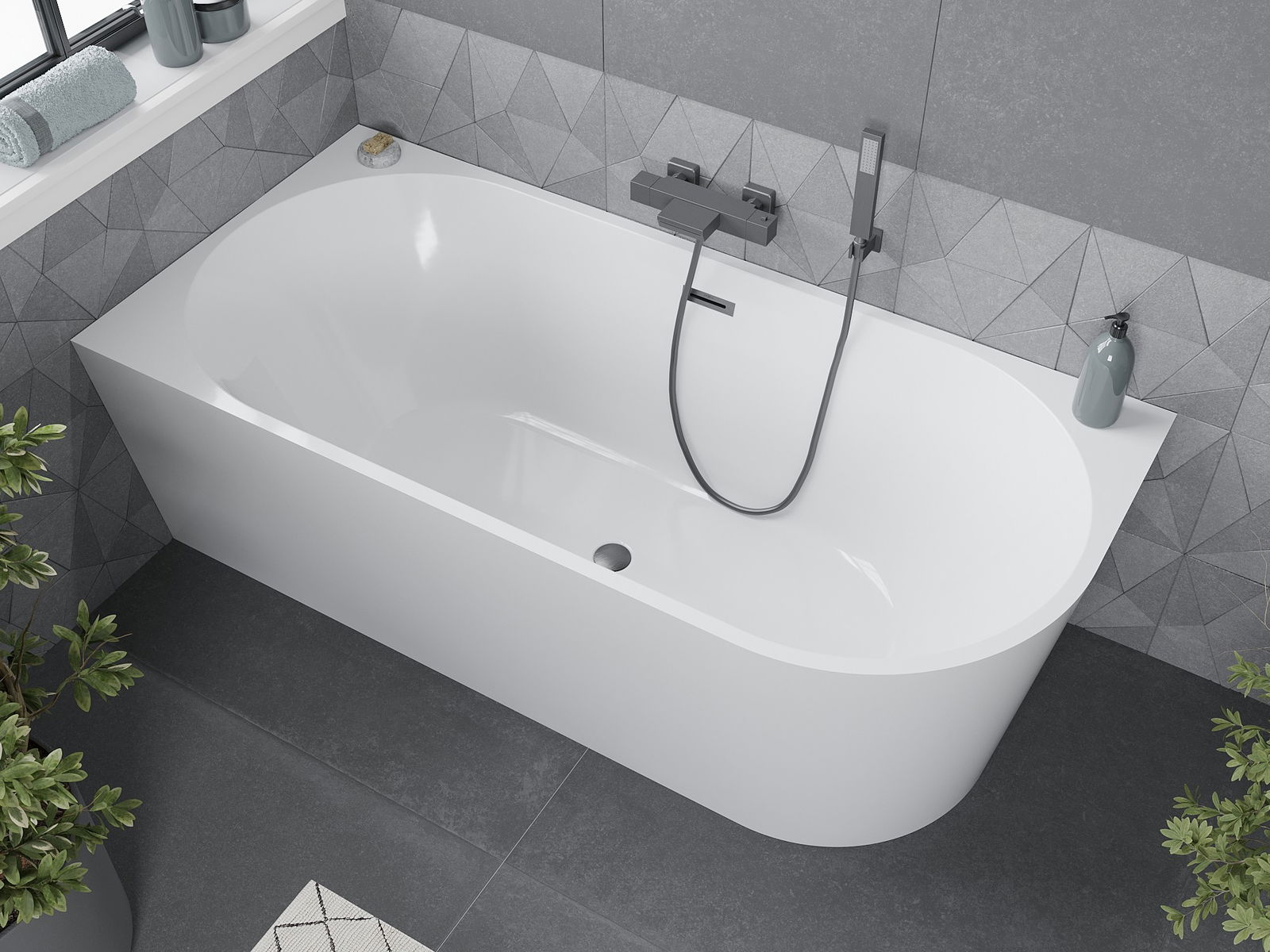 Mexen Mia szabadon álló sarokkád bal 160 x 75 cm, fehér, gun gray ecsetelt túlfolyó - 52691607500L-66